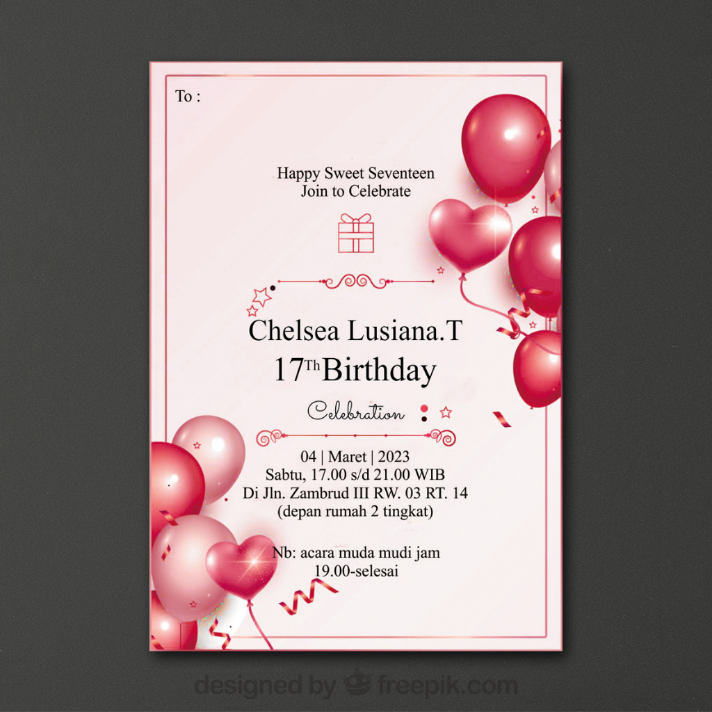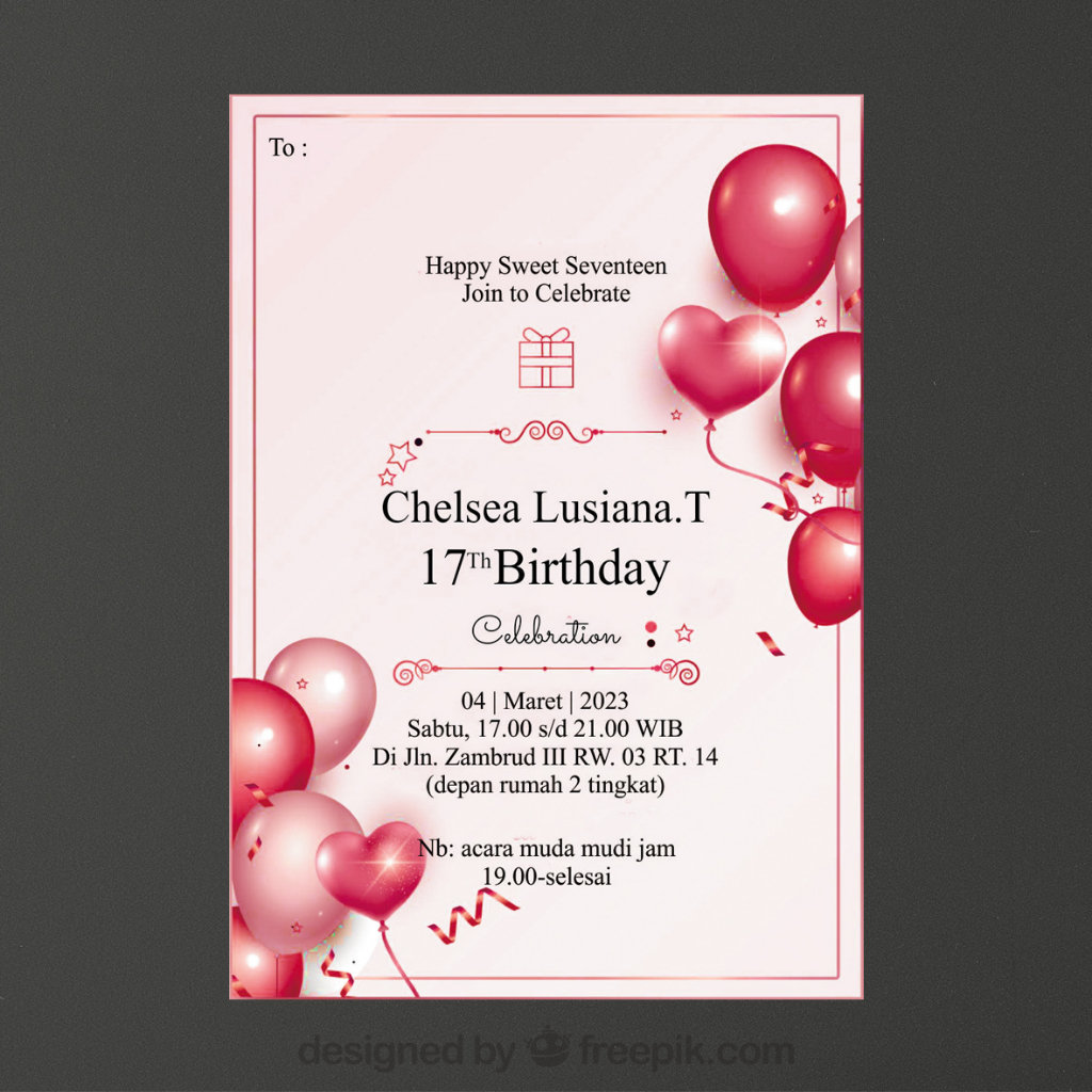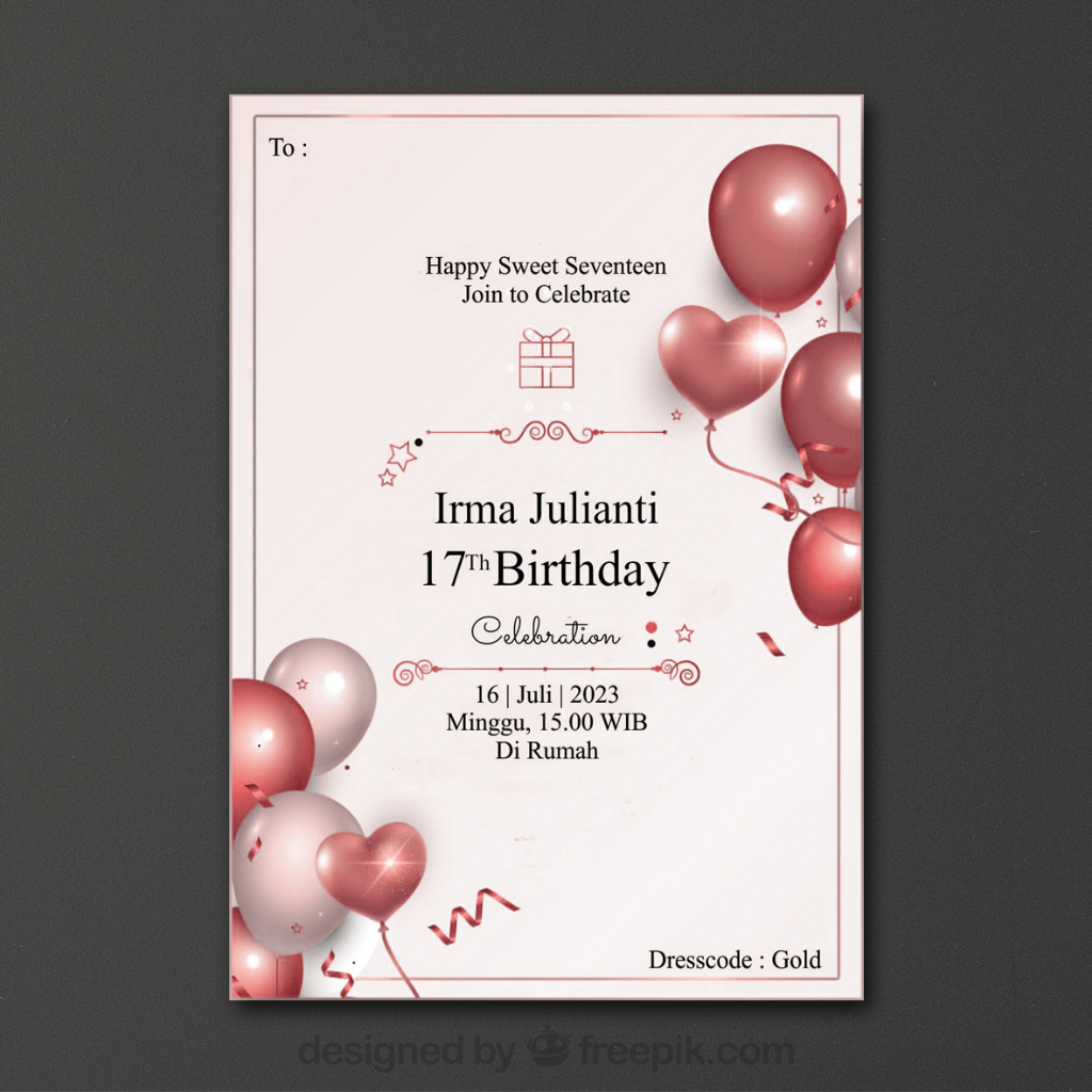 Undangan Ulang Tahun Realistic Gold Variasi 2 / Undangan Ultah Remaja / Undangan ulang tahun murah / Undangan ultah hitam, biru, pink, ungu, hijau, merah