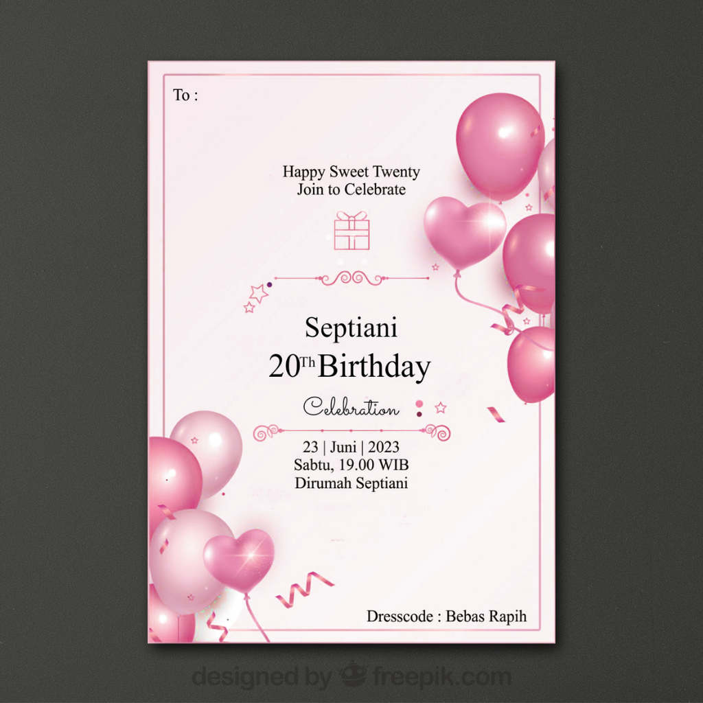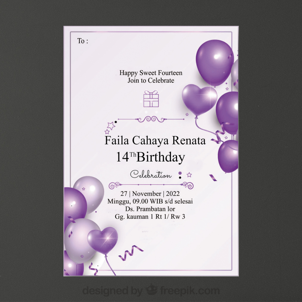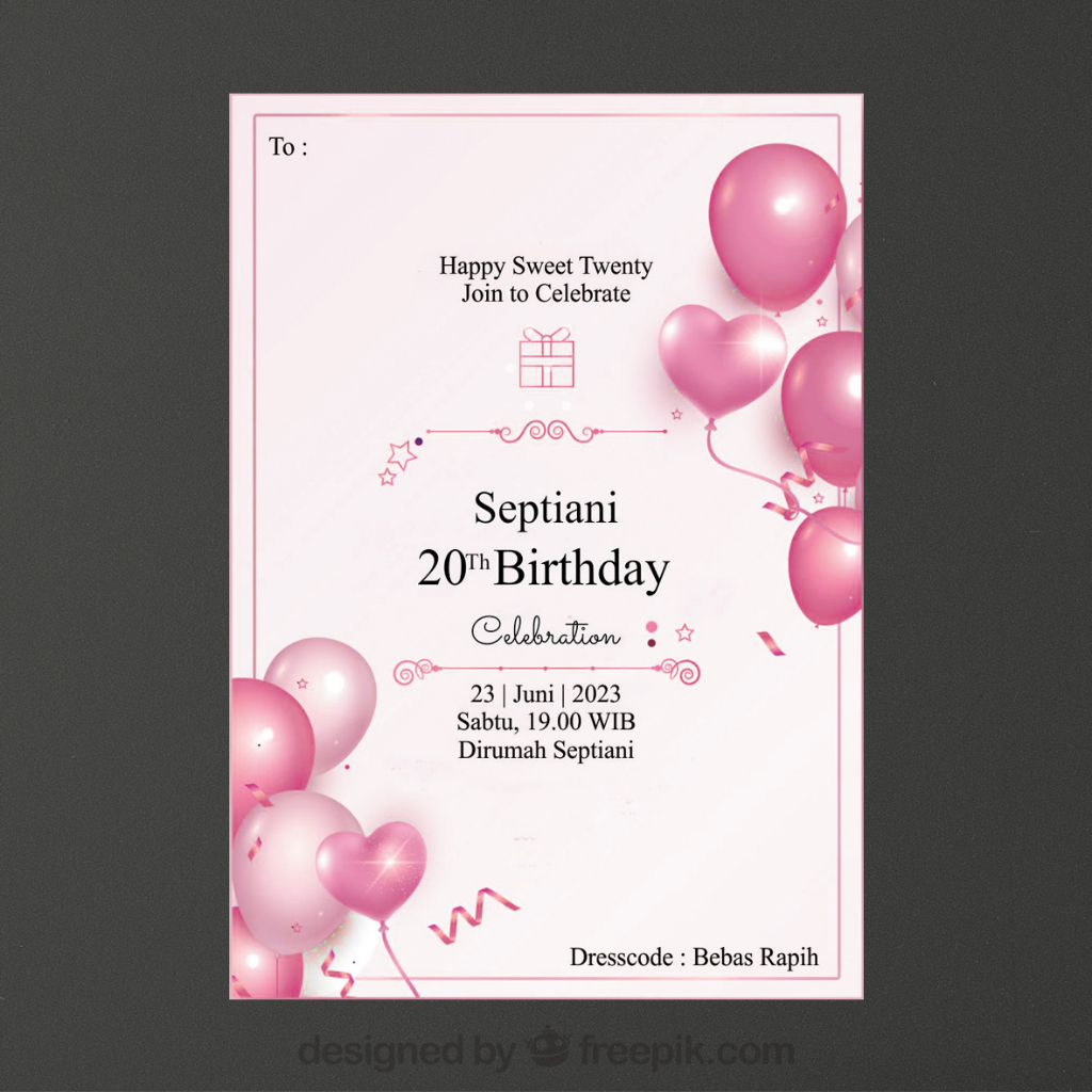 Undangan Ulang Tahun Realistic Gold Variasi 2 / Undangan Ultah Remaja / Undangan ulang tahun murah / Undangan ultah hitam, biru, pink, ungu, hijau, merah