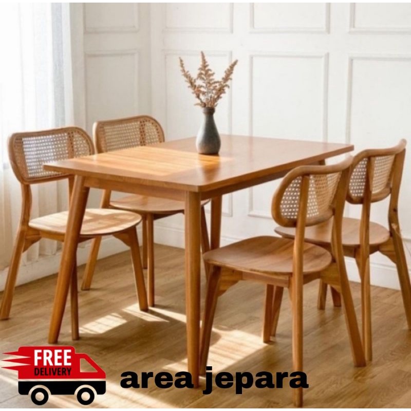 MEJA MAKAN MINIMALIS KURSI 4 KAYU JATI TUA JEPARA