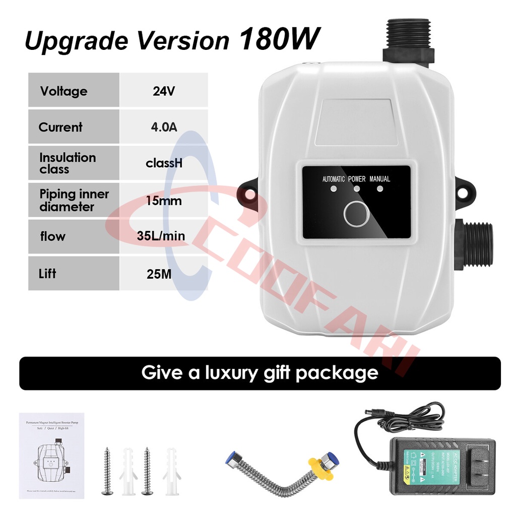 Pressure Pompa Air 24V 180W 85 Kaki Pompa Booster Pump Pompa Pendorong Connector Housing untuk Wastafel Dapur Shower Kepala Di Luar Tap air toren