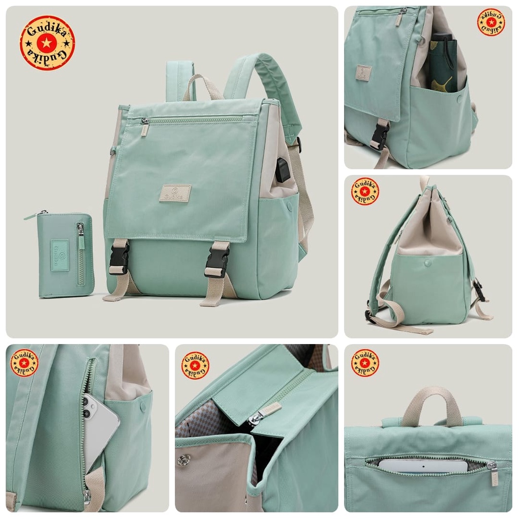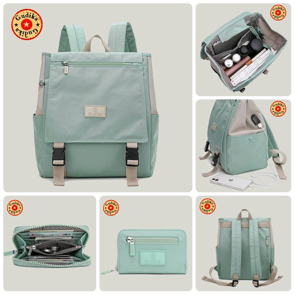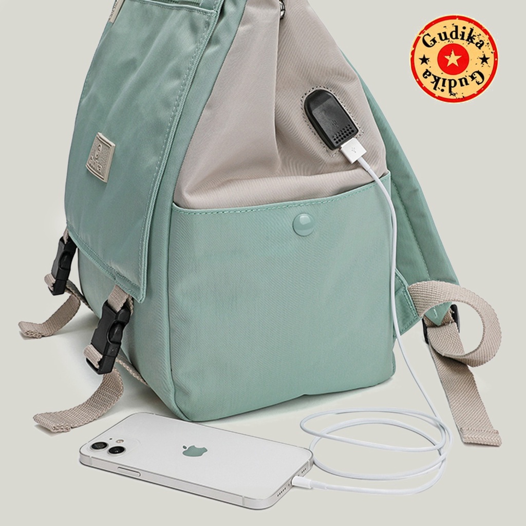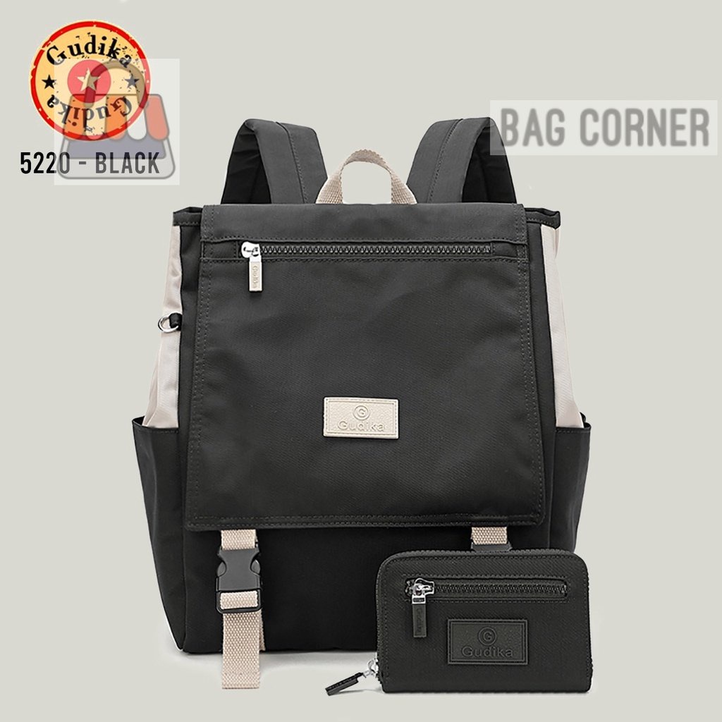 BagCorner - GUDIKA Bag 5220 - Tas Ransel Laptop USB Set Dompet Wanita Pria Kekinian Import Original Terbaru Bahan Nilon Waterproof Anti Air Backpack Premium Korea bisa muat banyak barang banyak - tas wanita - tas cewek - tas kerja - tas punggung - tas gud