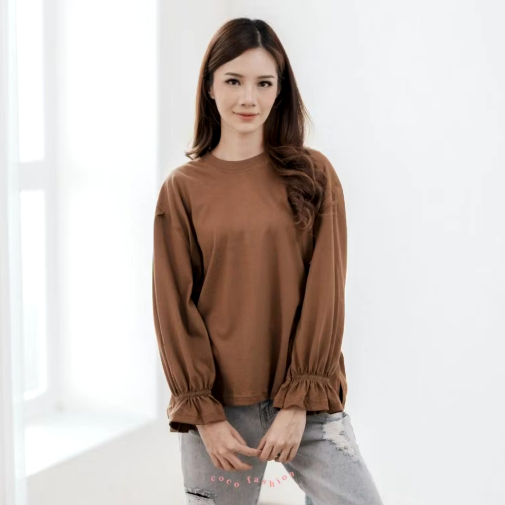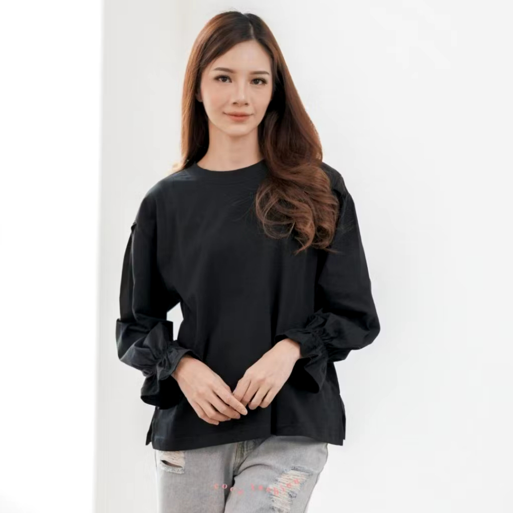 Atasan Wanita Kaos Combed Lengan Panjang Anya Top Blouse