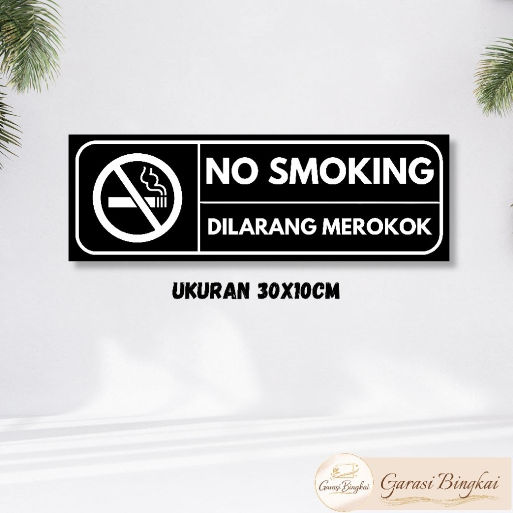Hiasan Dinding Peringatan 30x10cm . Peringatan No Smoking. Papan Larangan CCTV No Smoking- Hitam