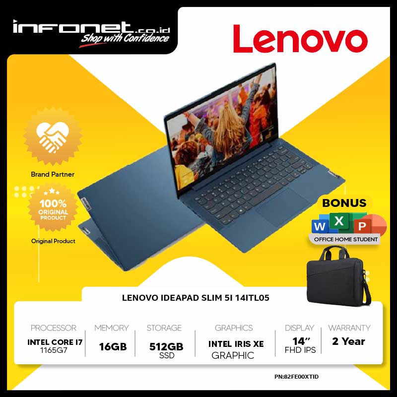 LENOVO IDEAPAD SLIM 5I I7 1165G7 16GB 512GB INTEL IRIS Xe 14" FHD IPS W11 OHS