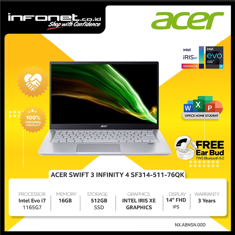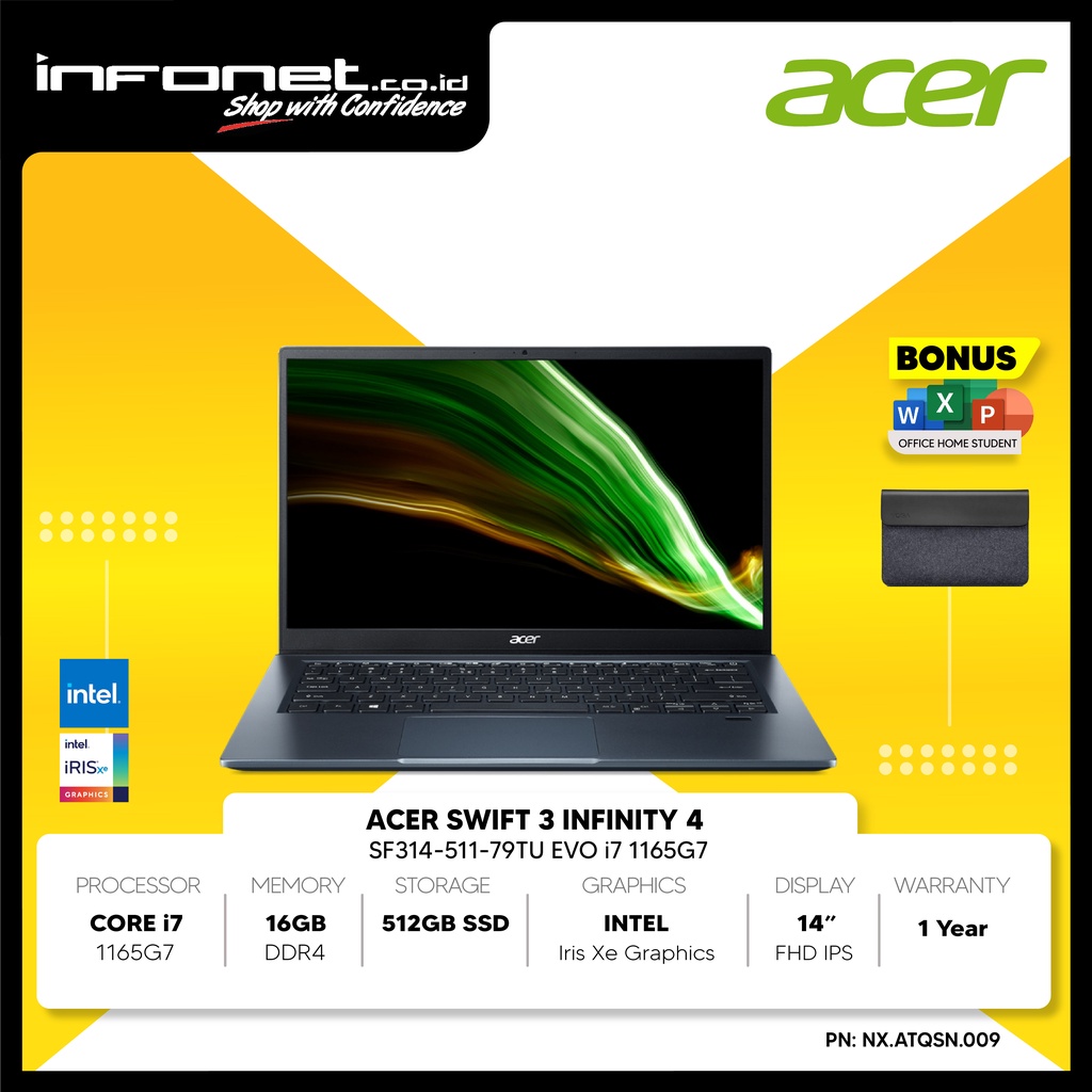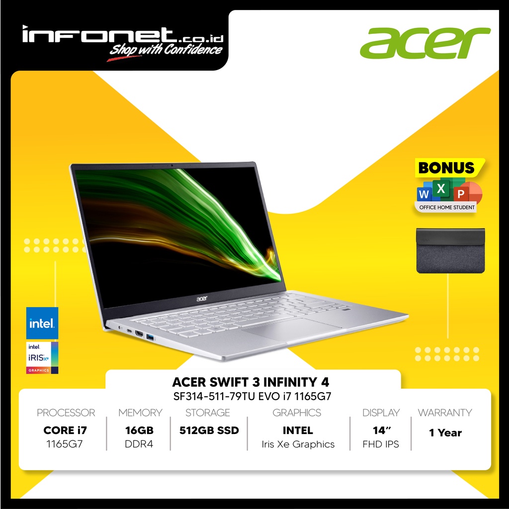ACER SWIFT 3 INFINITY 4 EVO i7 1165G7 16GB 512GB IRIS XE 14" FHD IPS W11 OHS21