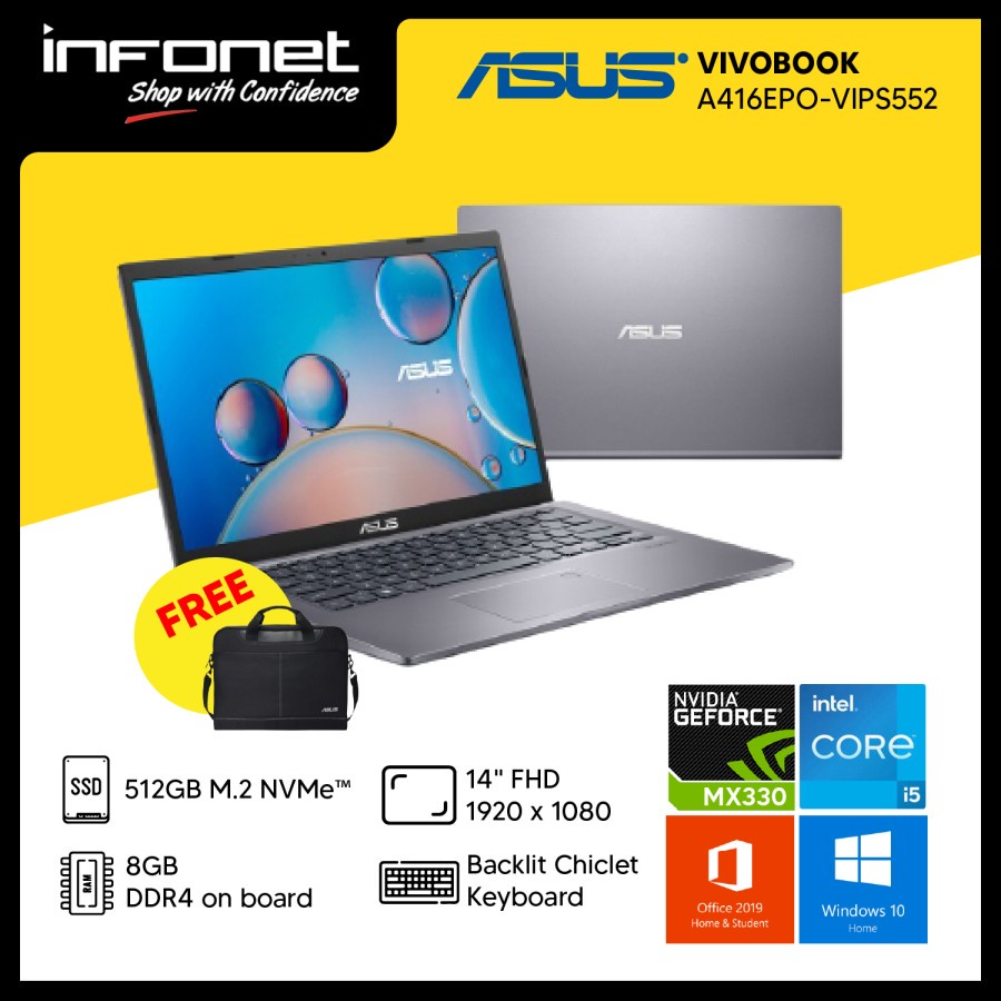 ASUS A416EPO-VIPS552 i5 1135G7 8GB 512GB SSD MX330 2GB 14" FHD IPS W10 OHS