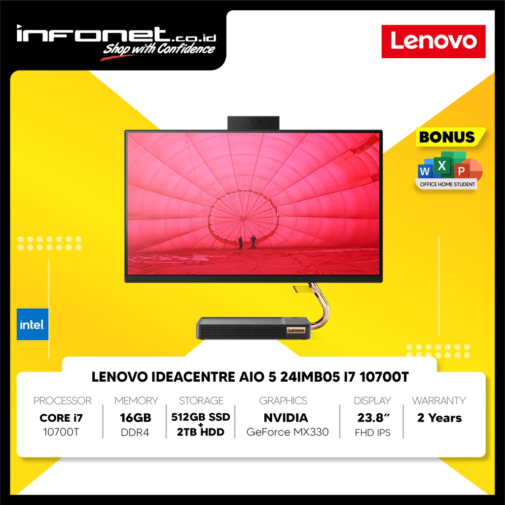 LENOVO IDEACENTRE AIO 5 24IMB05 I7 10700T 16GB 512GB SSD + 2TB HDD MX330 2GB 23.8" FHD IPS TOUCH W10 OHS