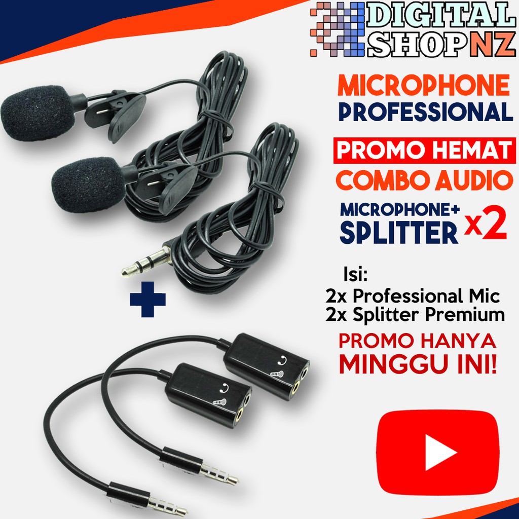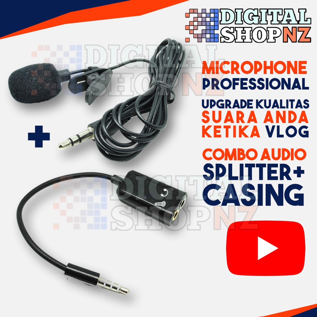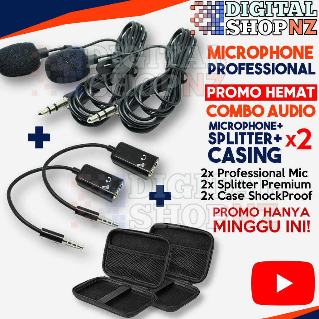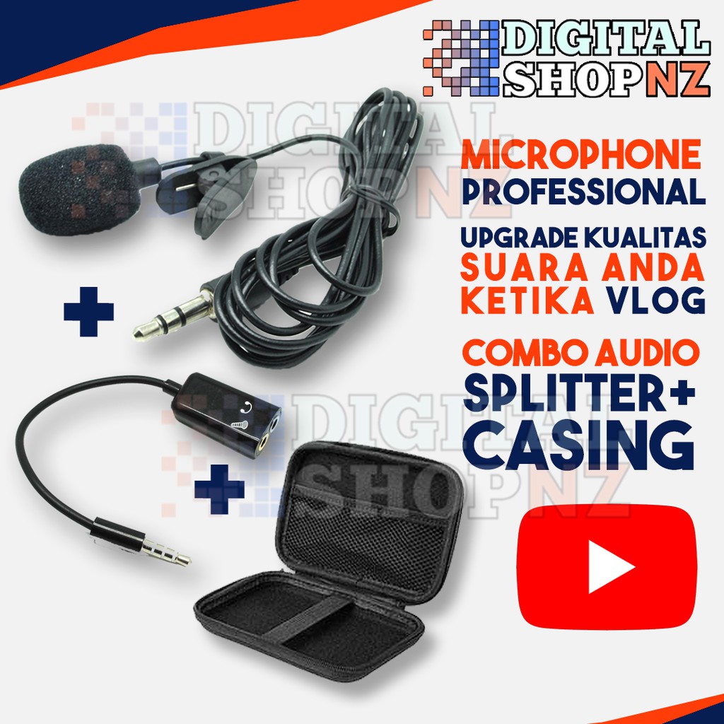 PAKET KOMPLIT Microphone Clip On + Splitter + Casing untuk Rapat Kerja Vlog Youtube Smule Bigo