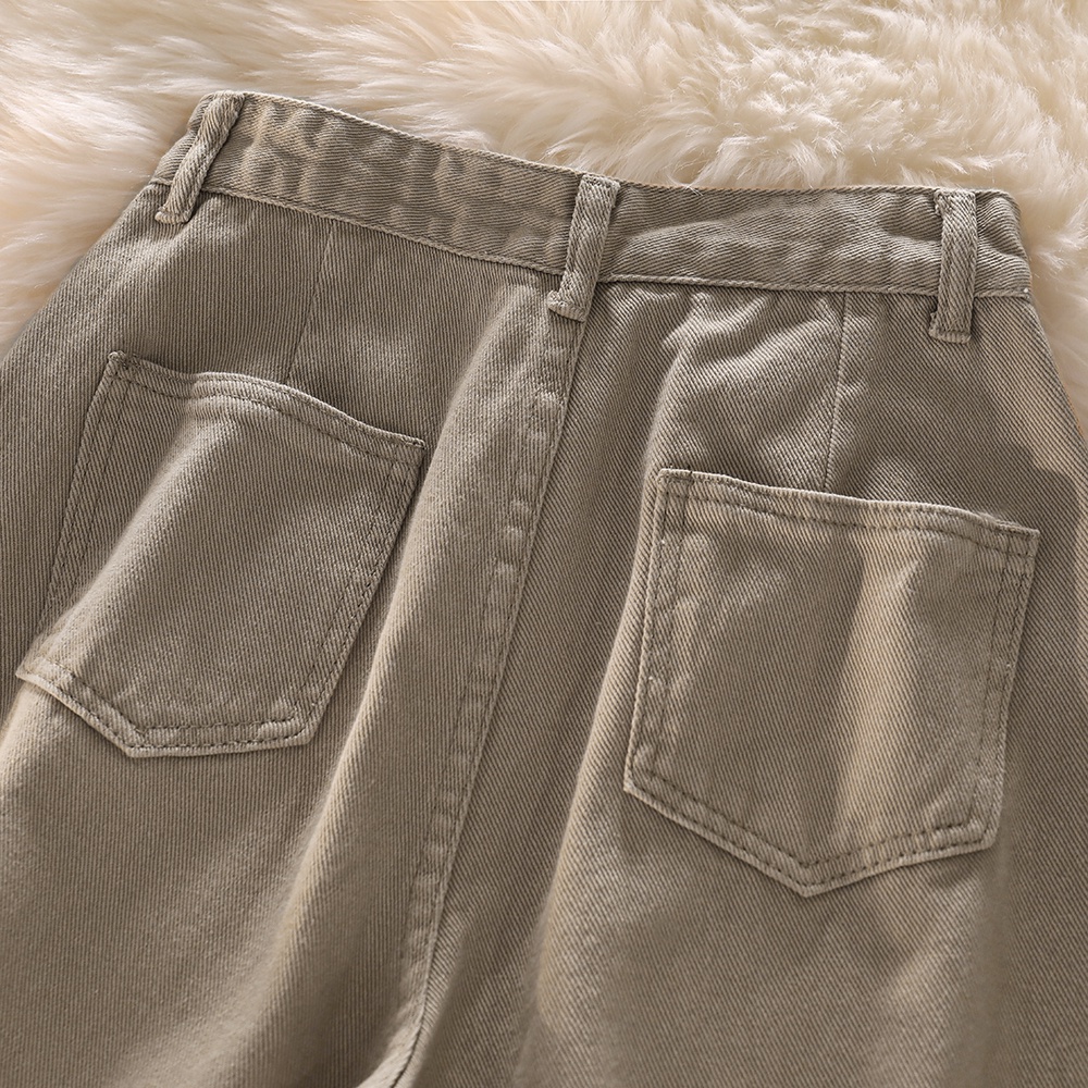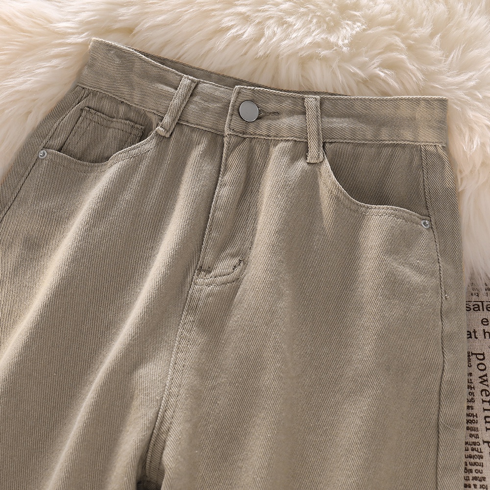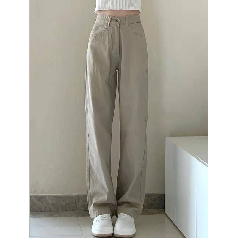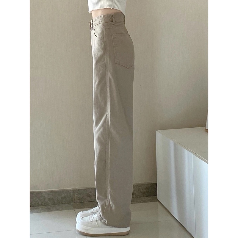 Warna Khaki Highwaist Loose Kasual Celana Jeans Panjang Wanita