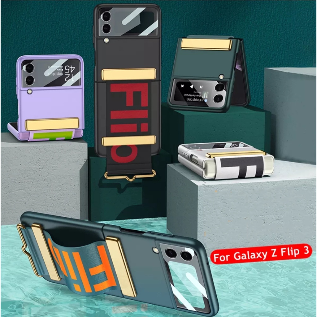 Slim Matte Strap Wristband Samsung Z FLIP 3 Case Camera Cover casing