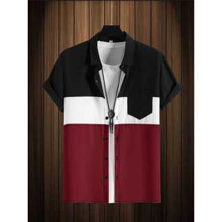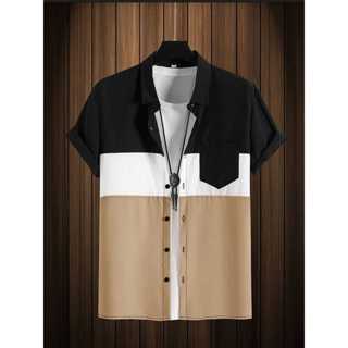 Atasan Kemeja Pria Kombinasi Three Colour Kemeja Lengan Pendek
