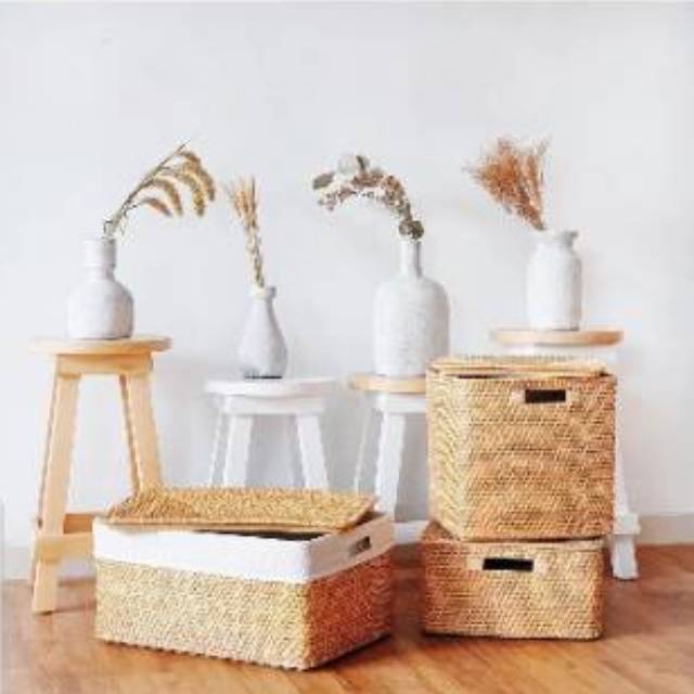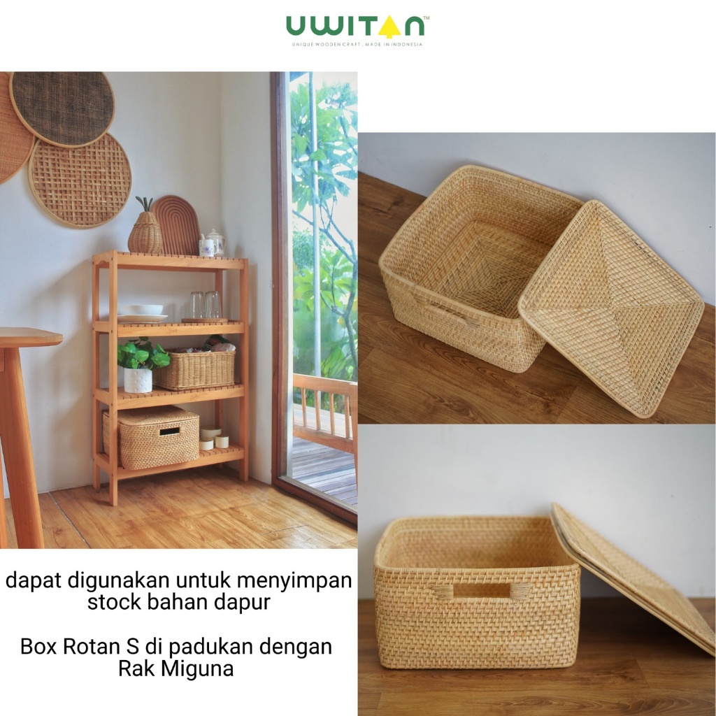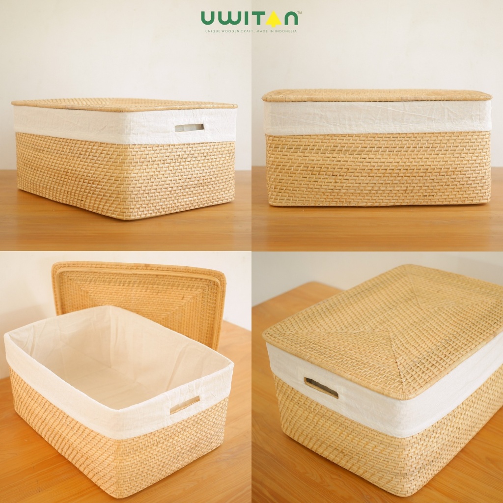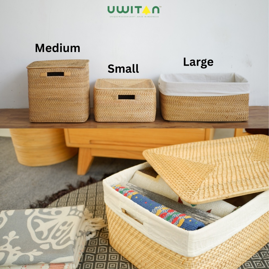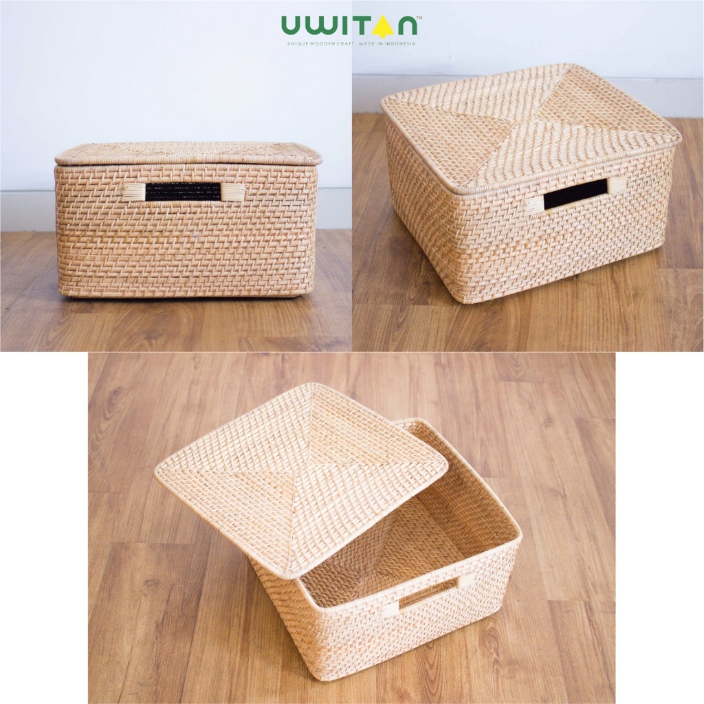 Uwitan Box Rotan Varian - Penyimpanan Serbaguna Bahan Rotan Asli Minimalis Ukuran kecil Sedang Besar Dengan Tutup Aesthetic Wadah Storage Keranjang Stock Bahan Dapur Dokumen Baju Underware Jumbo Hijab Kotak Selimut Sprei Kabel Box Mainan Anak