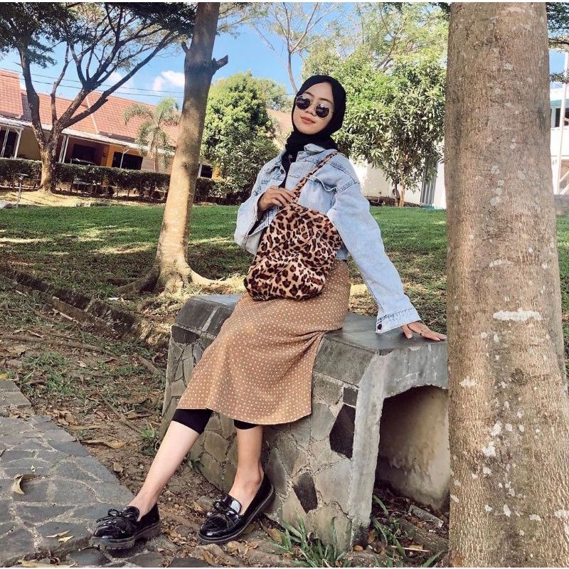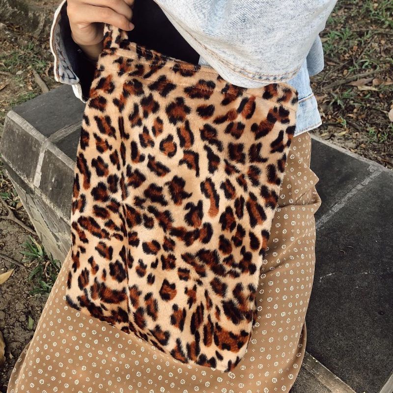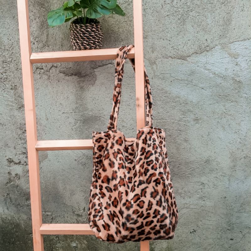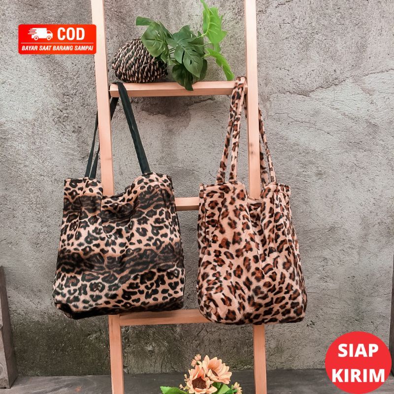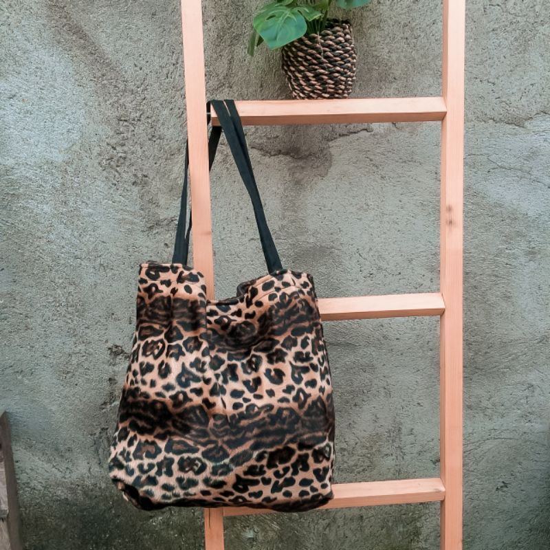 Tas totebag motif bulu bludru macan leopard wanita / tas hewan