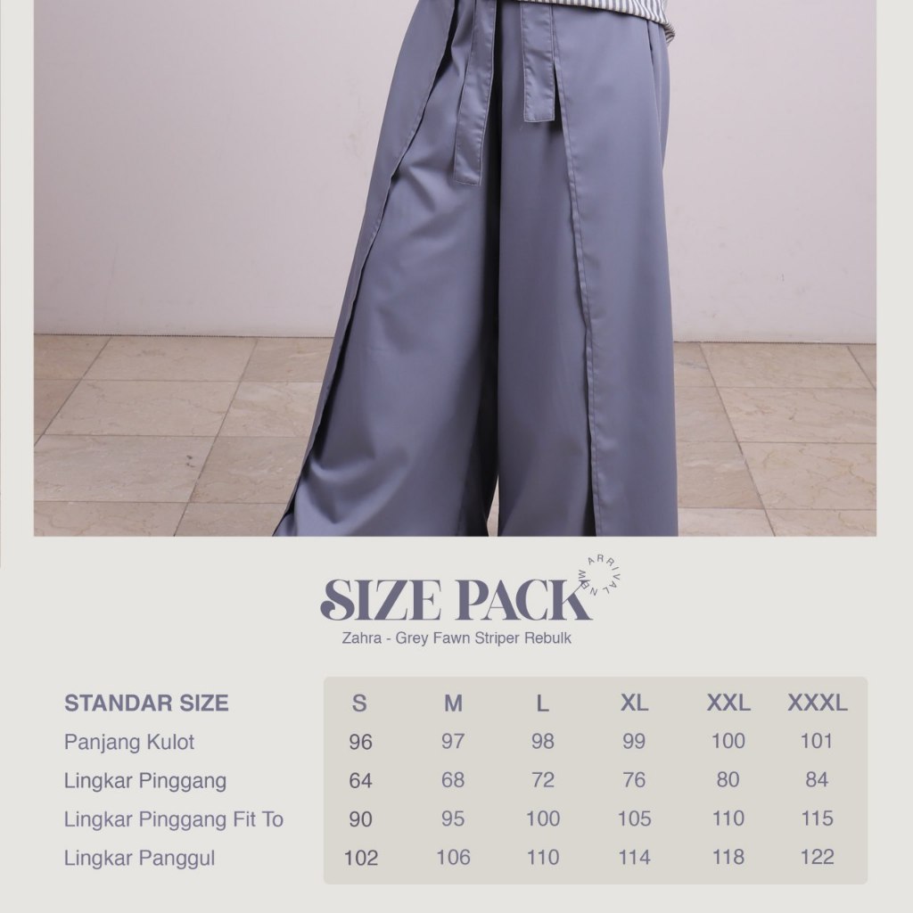 One Set Zahra Stripper Quarry Grey Cullote - UPMORE Zahra Stripper Quarry Grey Cullote || Baju Mutif Premium