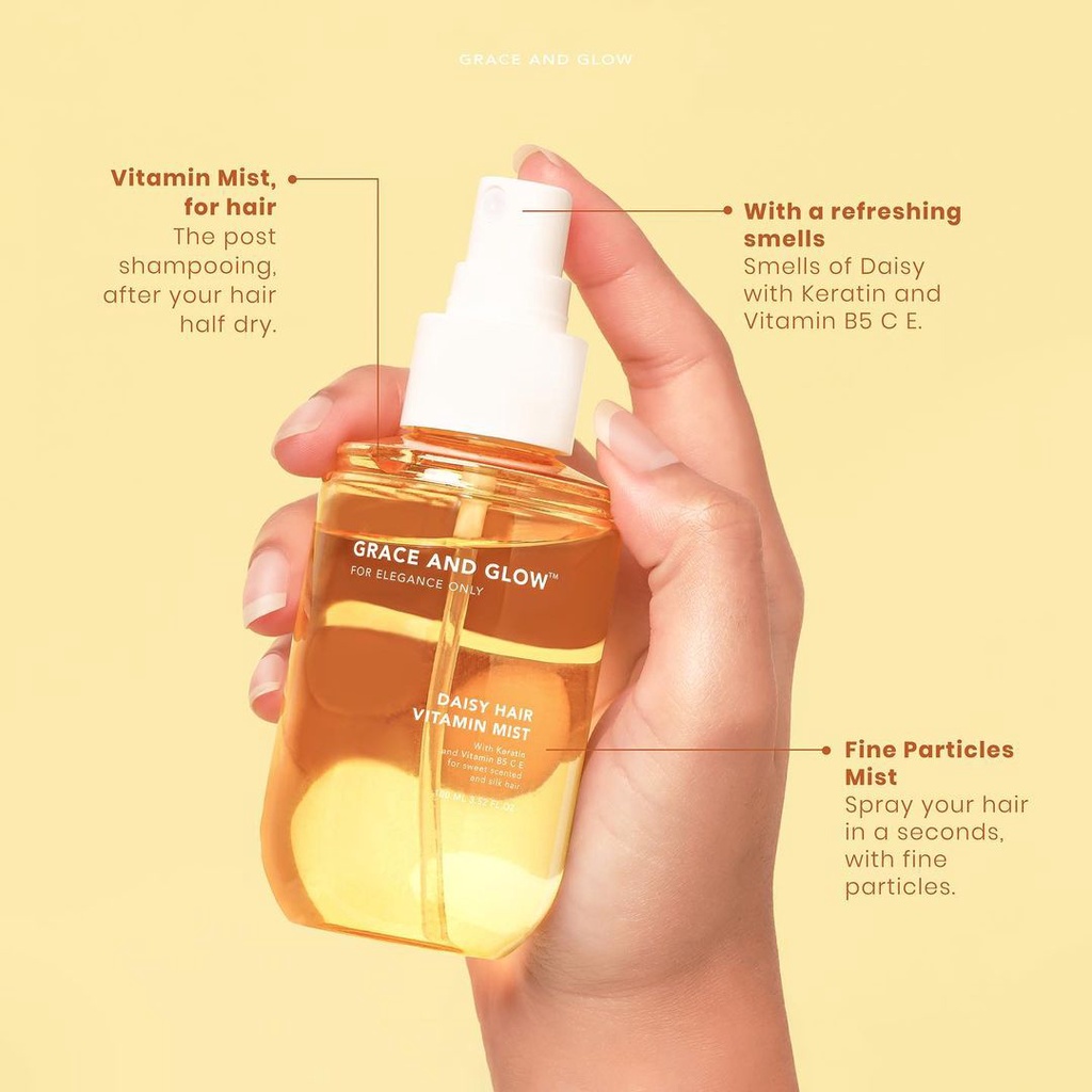 Grace and Glow Daisy Hair Mist Sweet Scented and Silk Hair / SERUM RAMBUT / black opium / peony 100ml