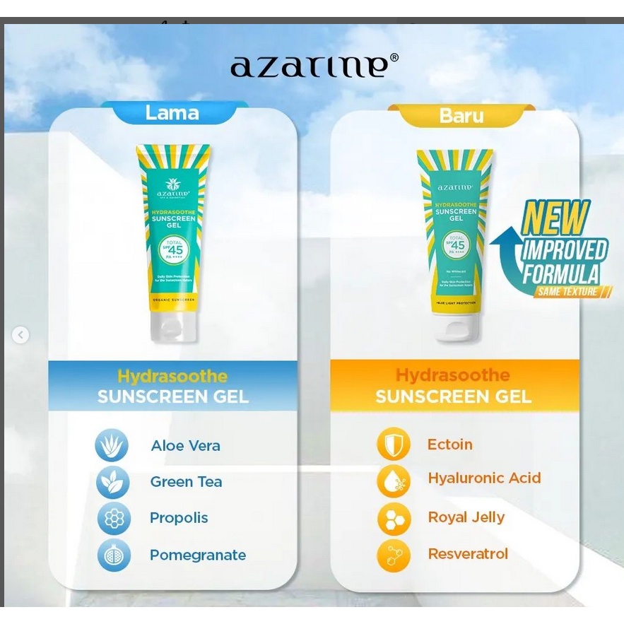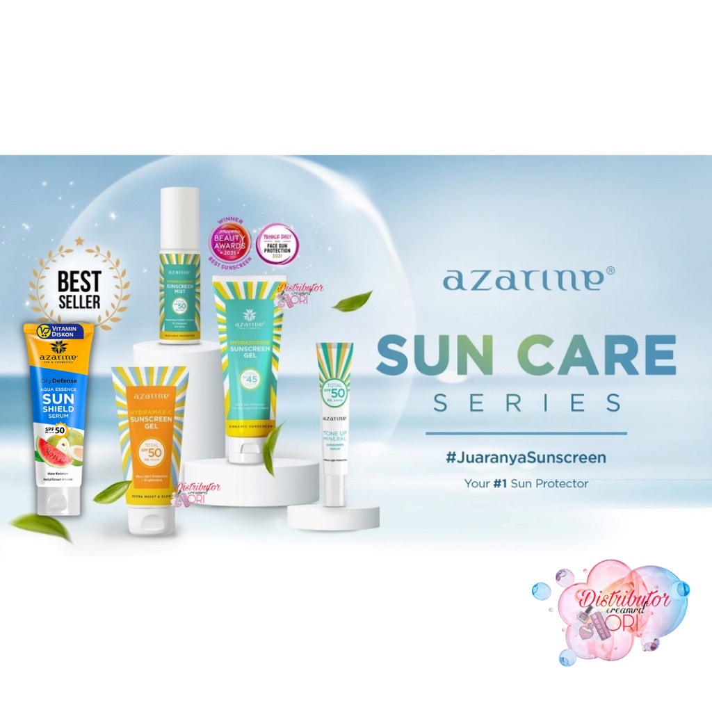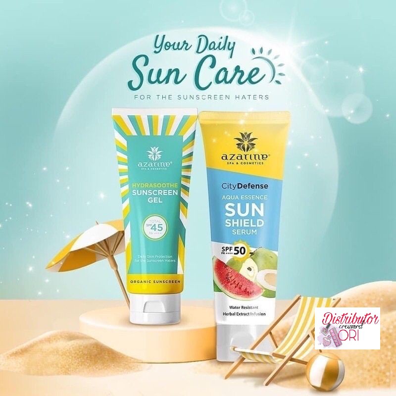 AZARINE Aqua Essence Sun Shield Serum SPF 50 PA+++ & Hydrasoothe Sunscreen Gel SPF45+++ | Distributor Cream Ori