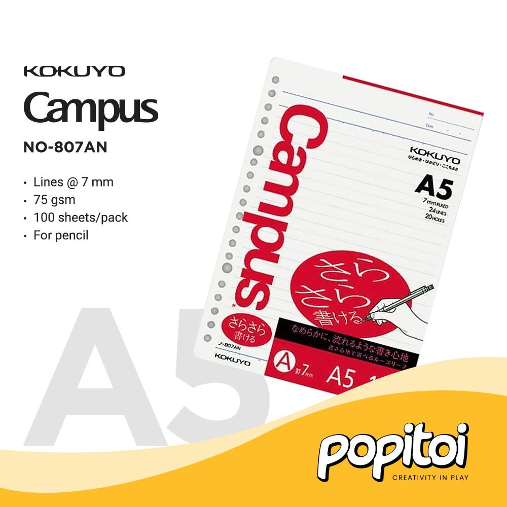 KOKUYO Campus Paper Loose Leaf Refill A5 50 100 Kertas Isi Ulang Binder