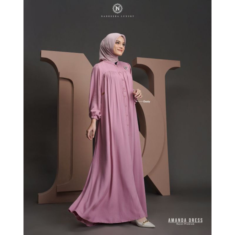 Amanda Dress By Nadheera Luxury Outfit Gamis Rayon premium Adem Lengan Semi Puffy Kondangan Model Simpel Elegan Kekinian