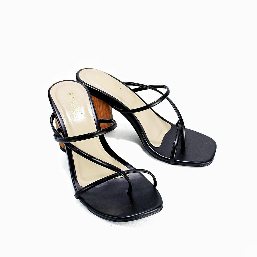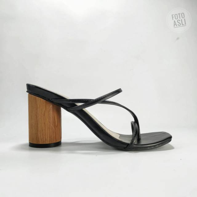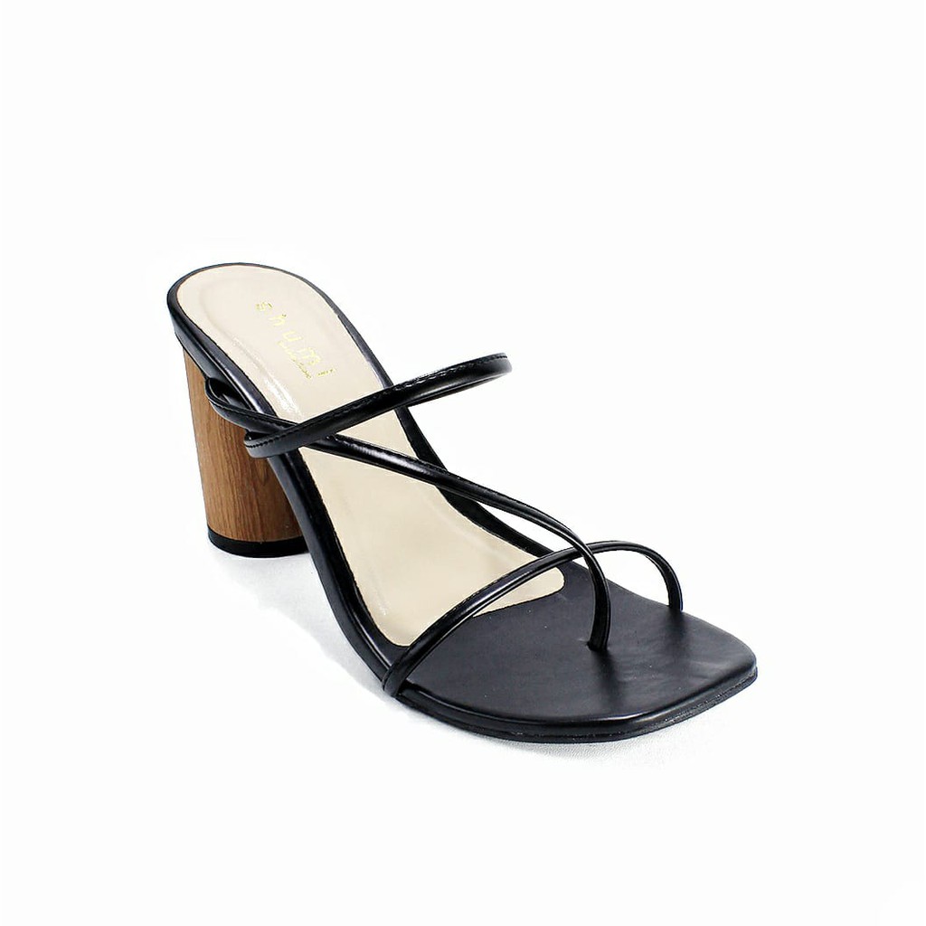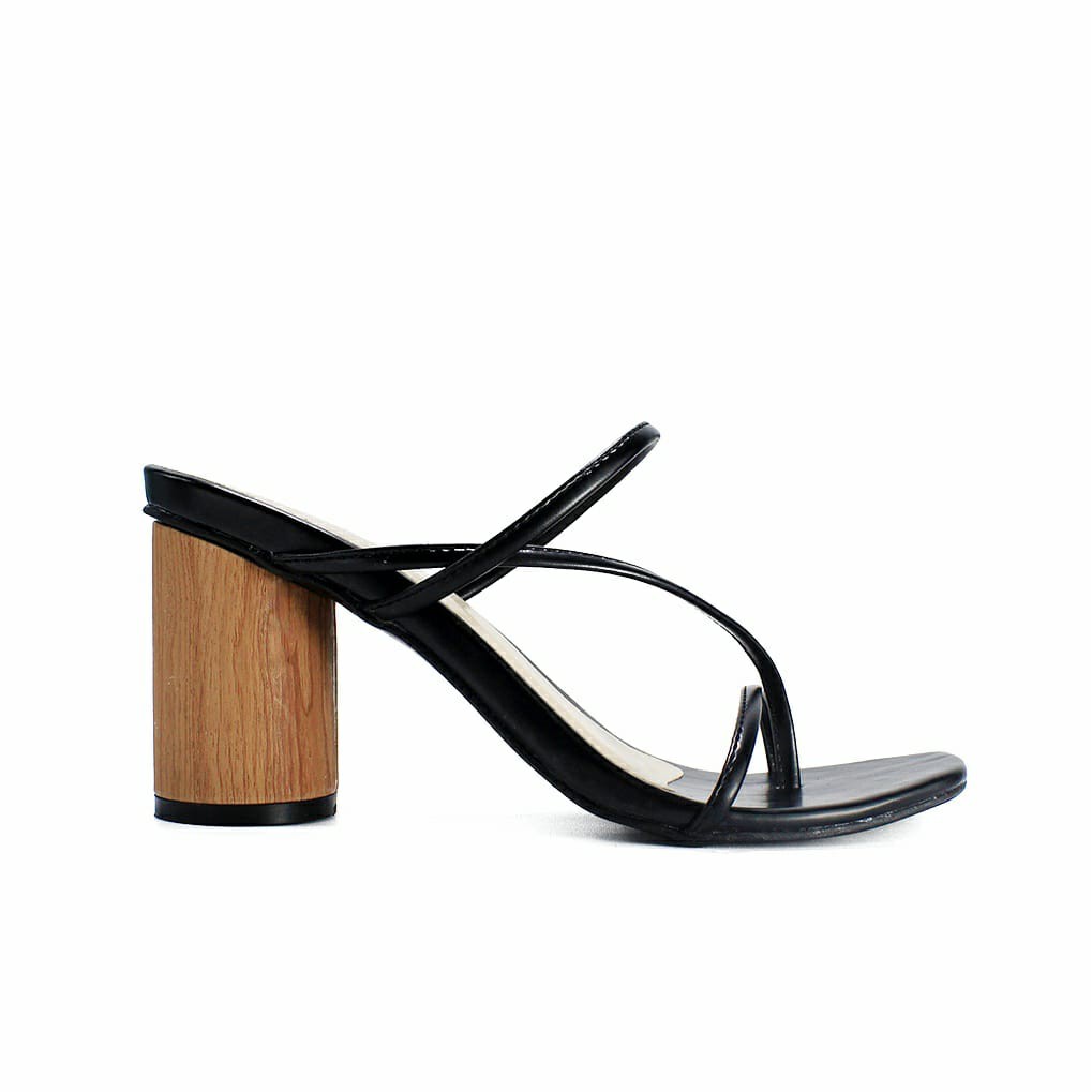 Shumi Collection - Sandal Wanita Heels Chunky Corak Kayu WD015-Black REAL PICT