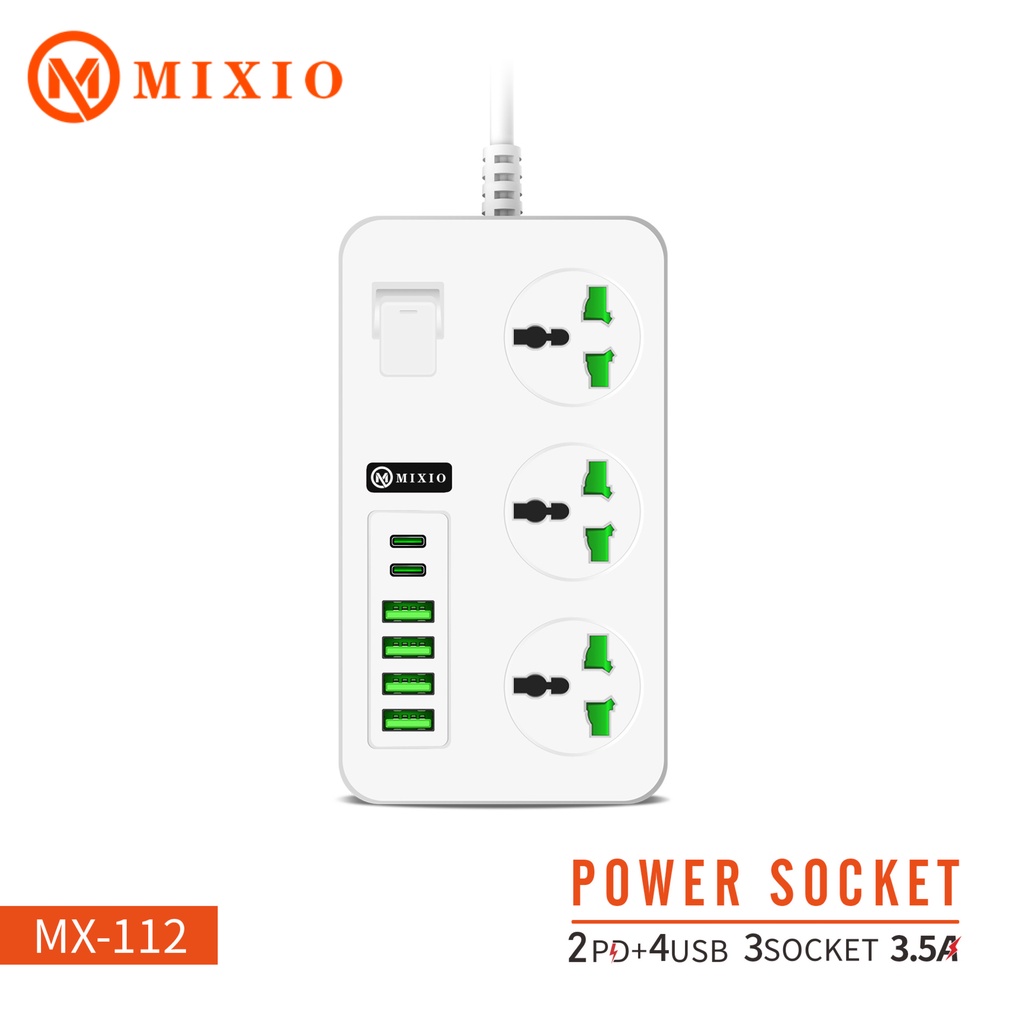 MIXIO MX-112 Power Socket Adaptor Charger Stop Kontak 2PD+4USB+3SOCKET