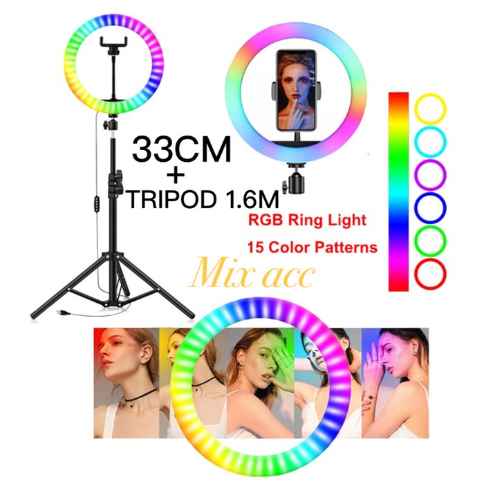 Ring Light RGB Rainbow MIXIO 33CM + TRIPOD MINI BESI TRIPOD STAND 1.1M 1.6M 2.M TikTok Youtuber