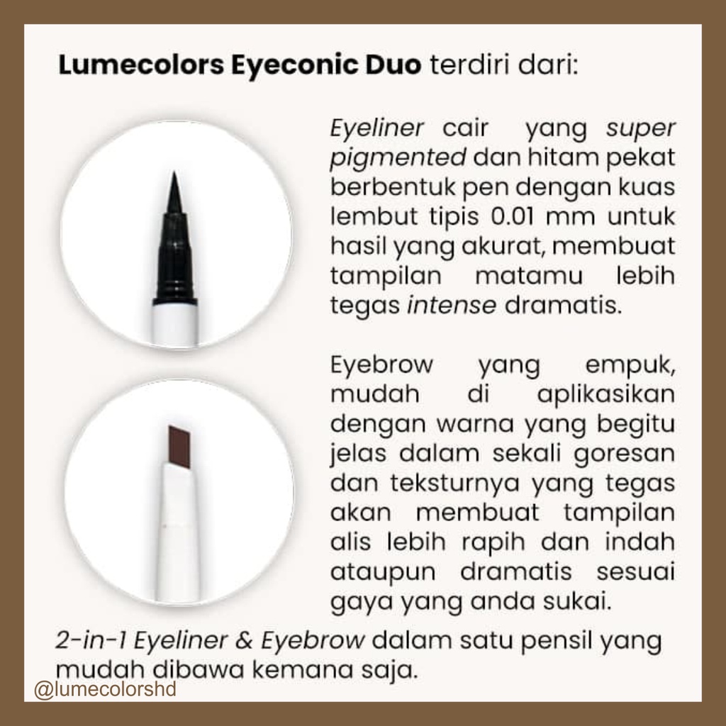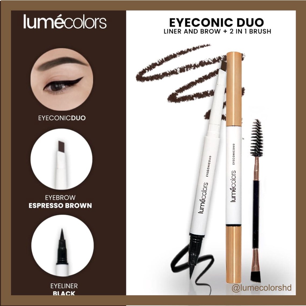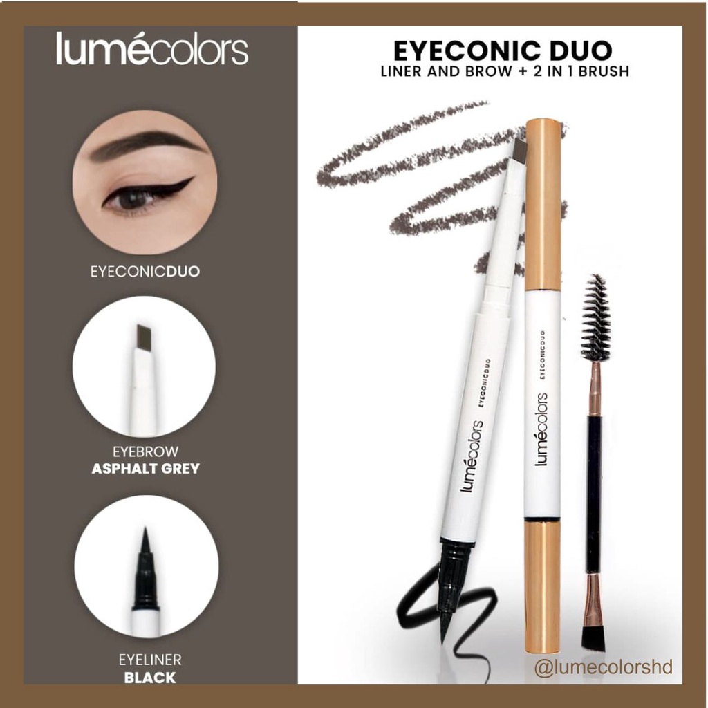 Lumecolors EYECONIC DUO (ED) Pensil Alis Dan Eyeliner Eyeliner Brush set Waterproof 3 IN1Alis Natural