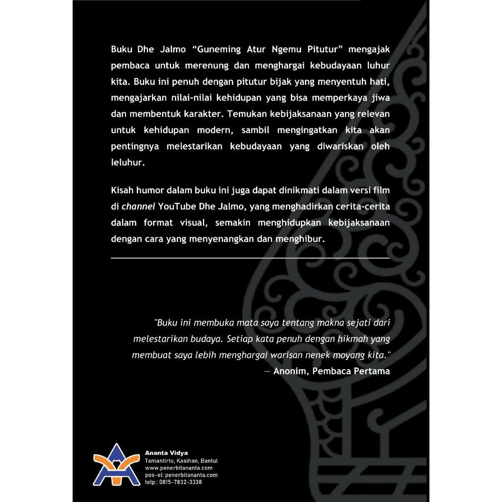 Novel budaya; Dhe Jalmo: Guneming Atur Ngemu Pitutur, Nguri-uri Luhuring Kabudhayan