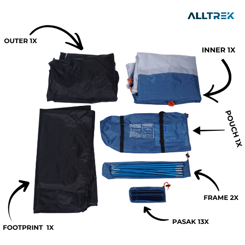 ALLTREK Tenda Hiking Ultralight KENARU 1-2 Person Double Layer UPF 50+ Anti UV Camping Tent Waterproof