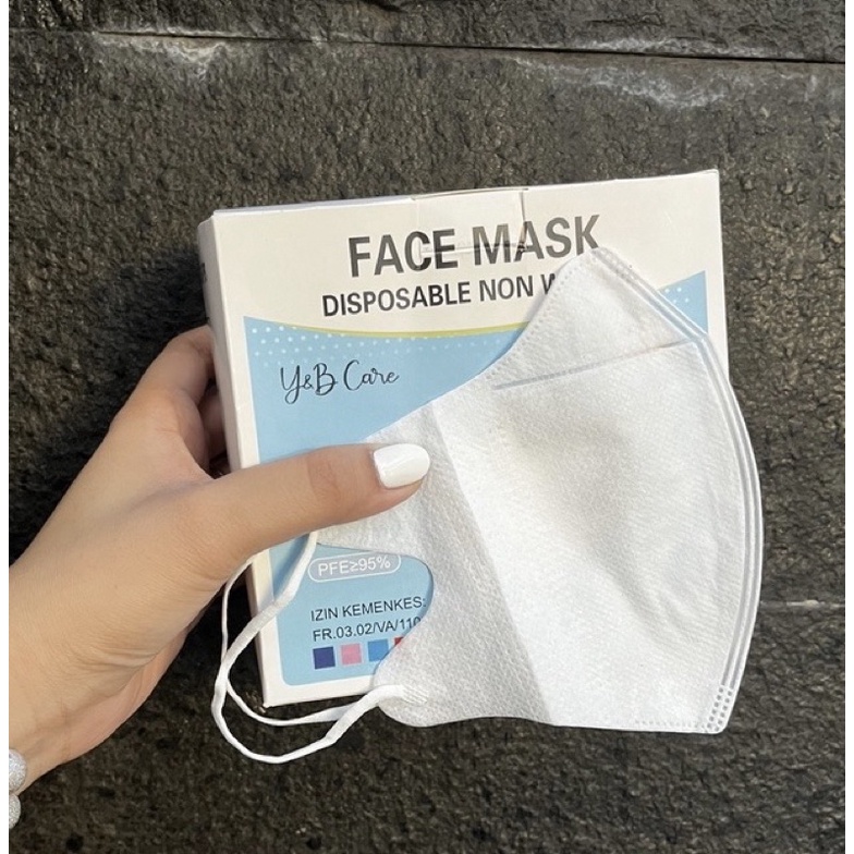 Masker Duckbill 3Ply FaceMask Premium Mask Putih Garis seperti Sensi/Masker Duckbill Y&B Care (50pcs)