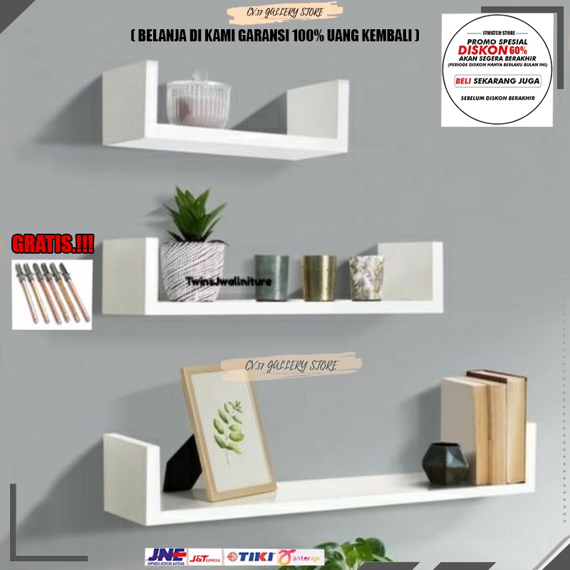 Rak Hambalan Ambalan Panjang 60/80/100/120 (Bentuk u) Melayang Tempat penyimpanan Pajangan Tanaman Hias Kosmetik make up Bumbu Dapur Bunga Buku Kopi Decorasi Dinding Tembok Tempel Ruang Tamu Kamar Tidur Cowok Minimalis Serbaguna Kayu Susun Rumah Murah 12