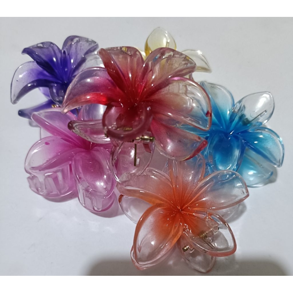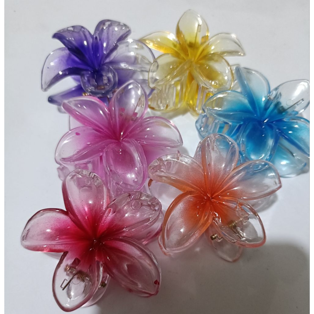 Jepitan Rambut bunga kamboja kecil 5 cm warna bening