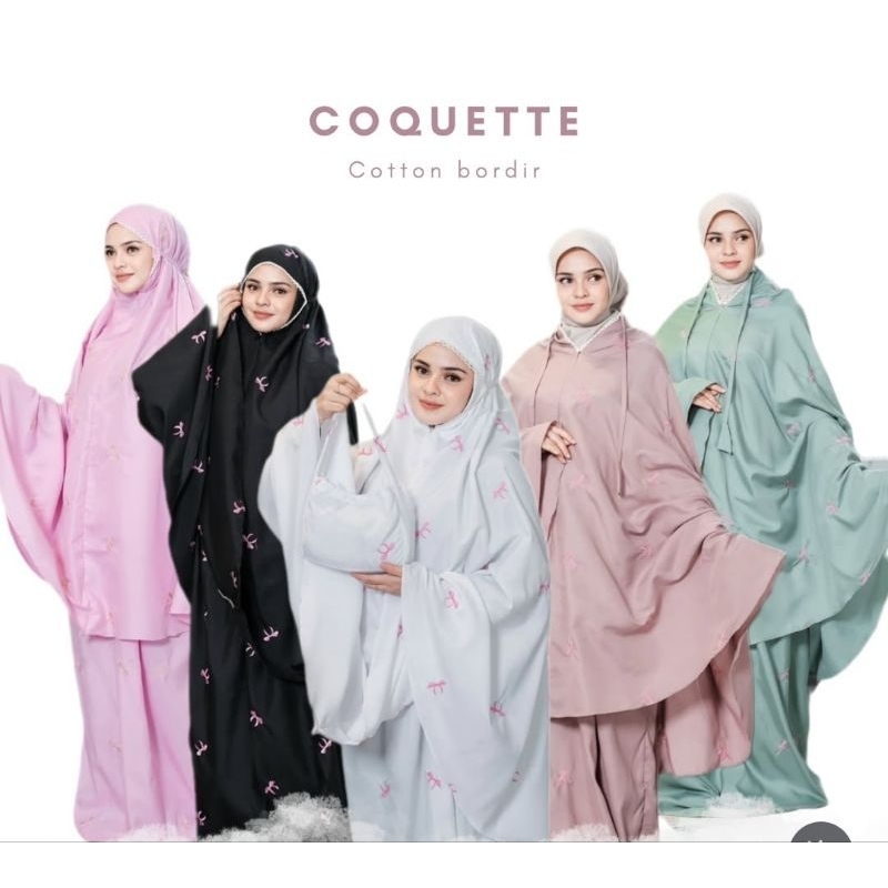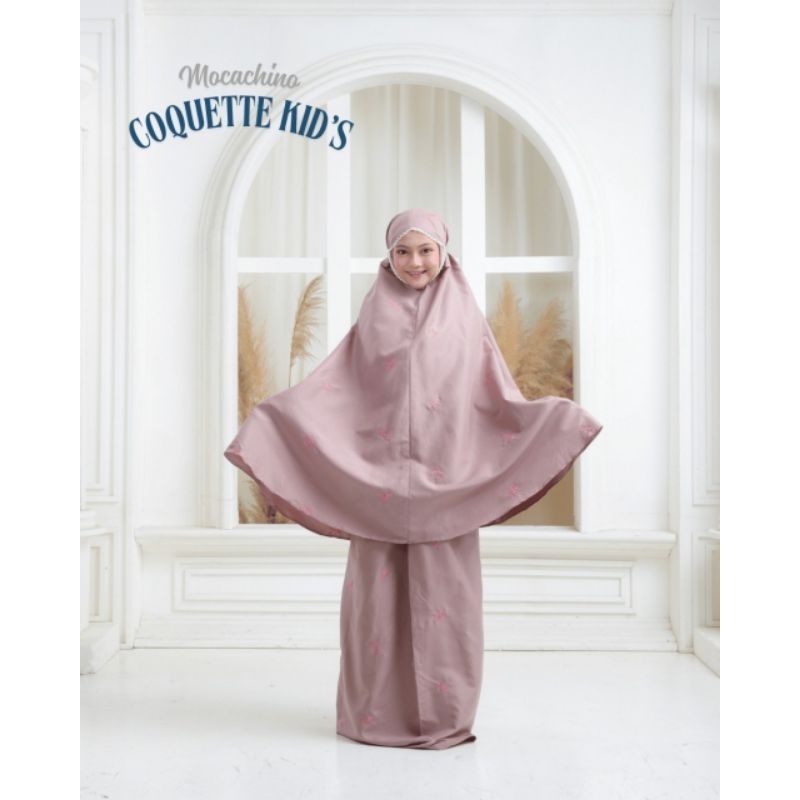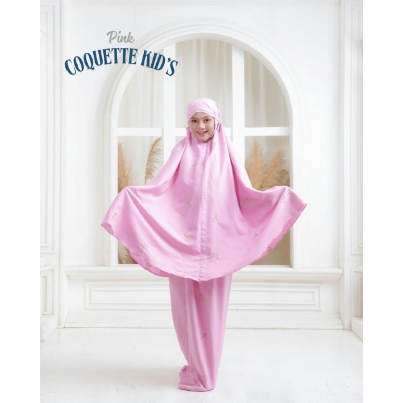 mukena ribbon pita couple anak dewasa 2in1 coquette