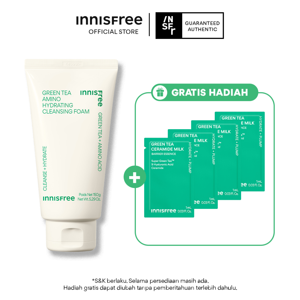 Buy 1 Get 4 Innisfree Green Tea Amino Hydrating Cleansing Foam Set Bundle - Sabun Cuci Wajah untuk Melembabkan