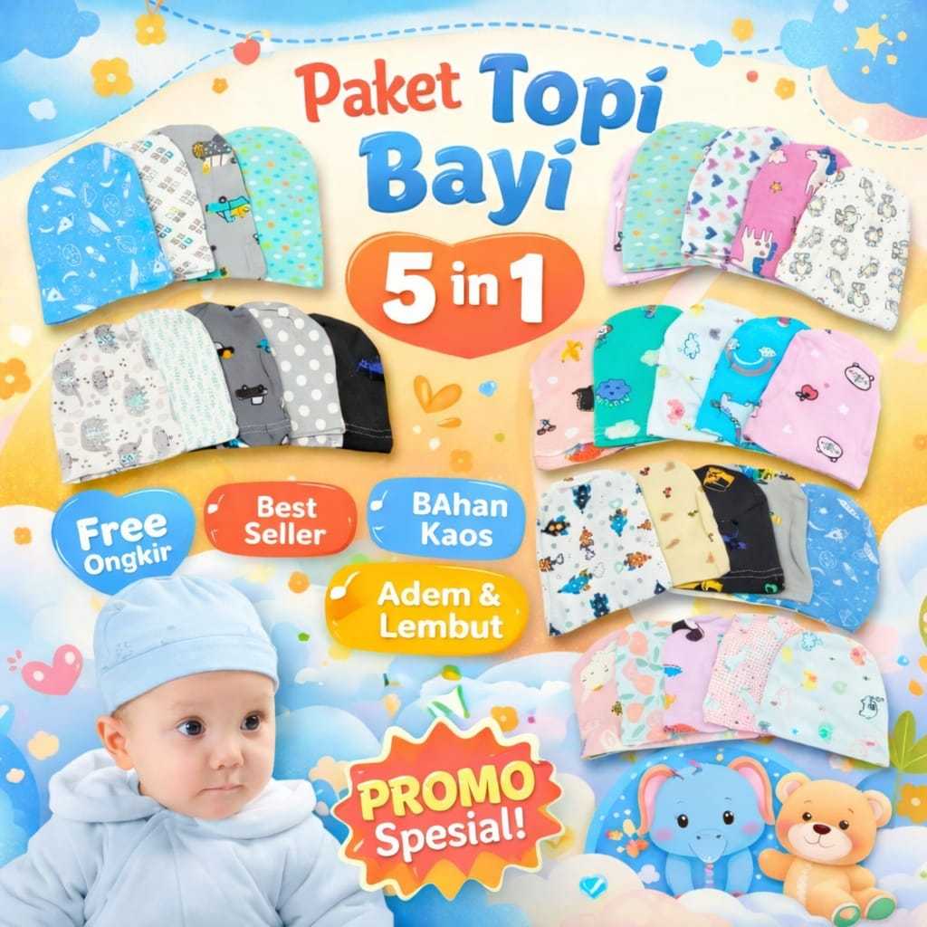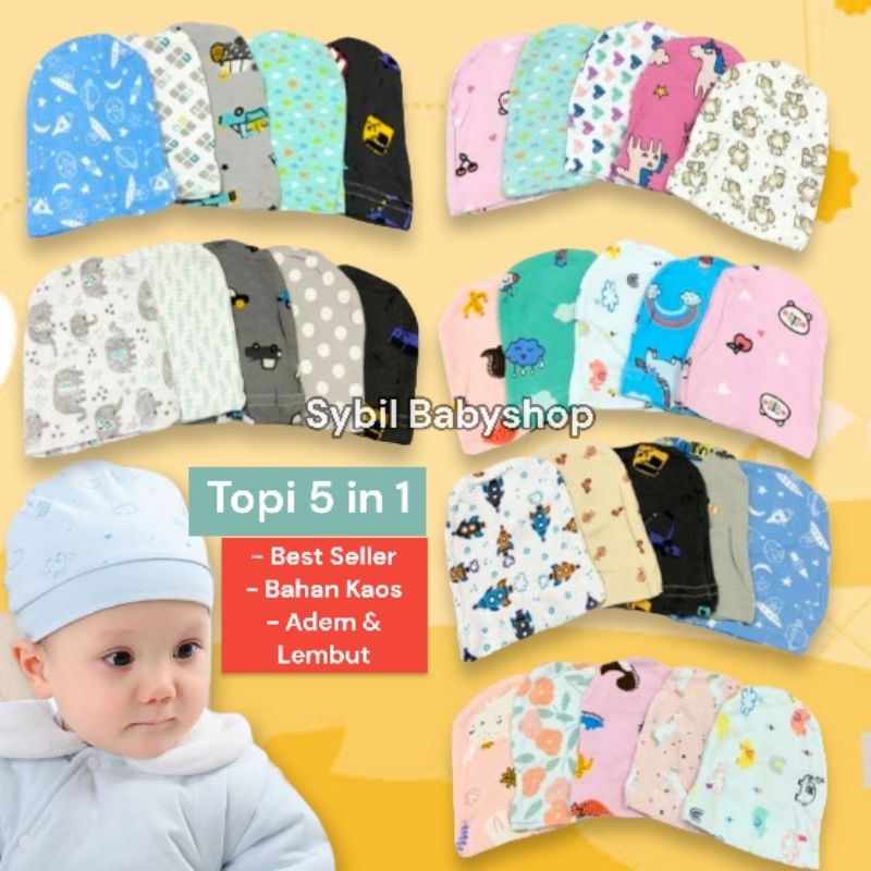 Topi Bayi 5 in 1 isi 5 / Infant Caps / Baby Hat / Topi anak