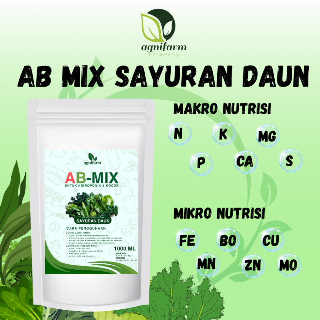 AGNI FARM NUTRISI PREMIUM HIDROPONIK AB MIX SAYURAN DAUN 1000 ML PUPUK SAYURAN HIDROPONIK