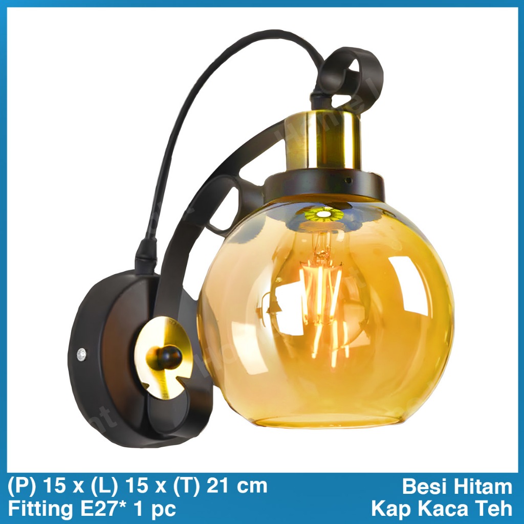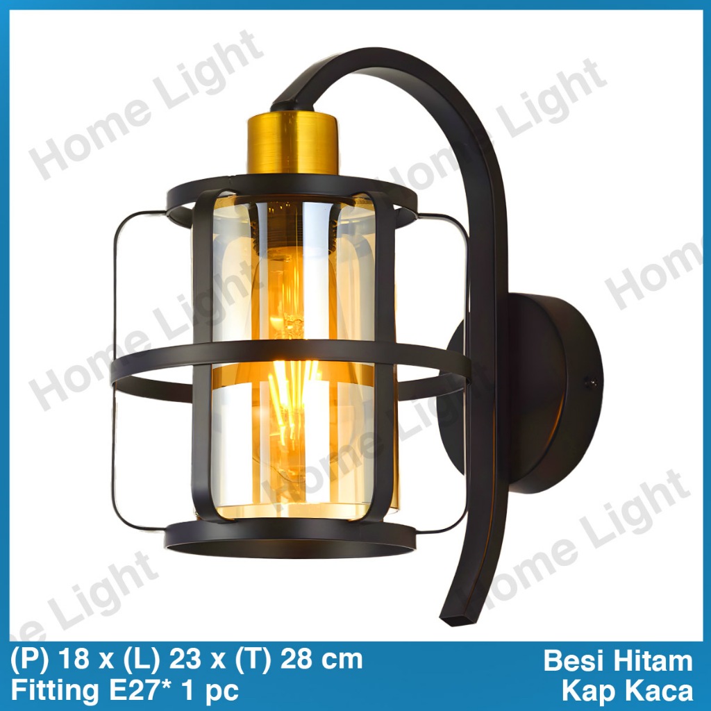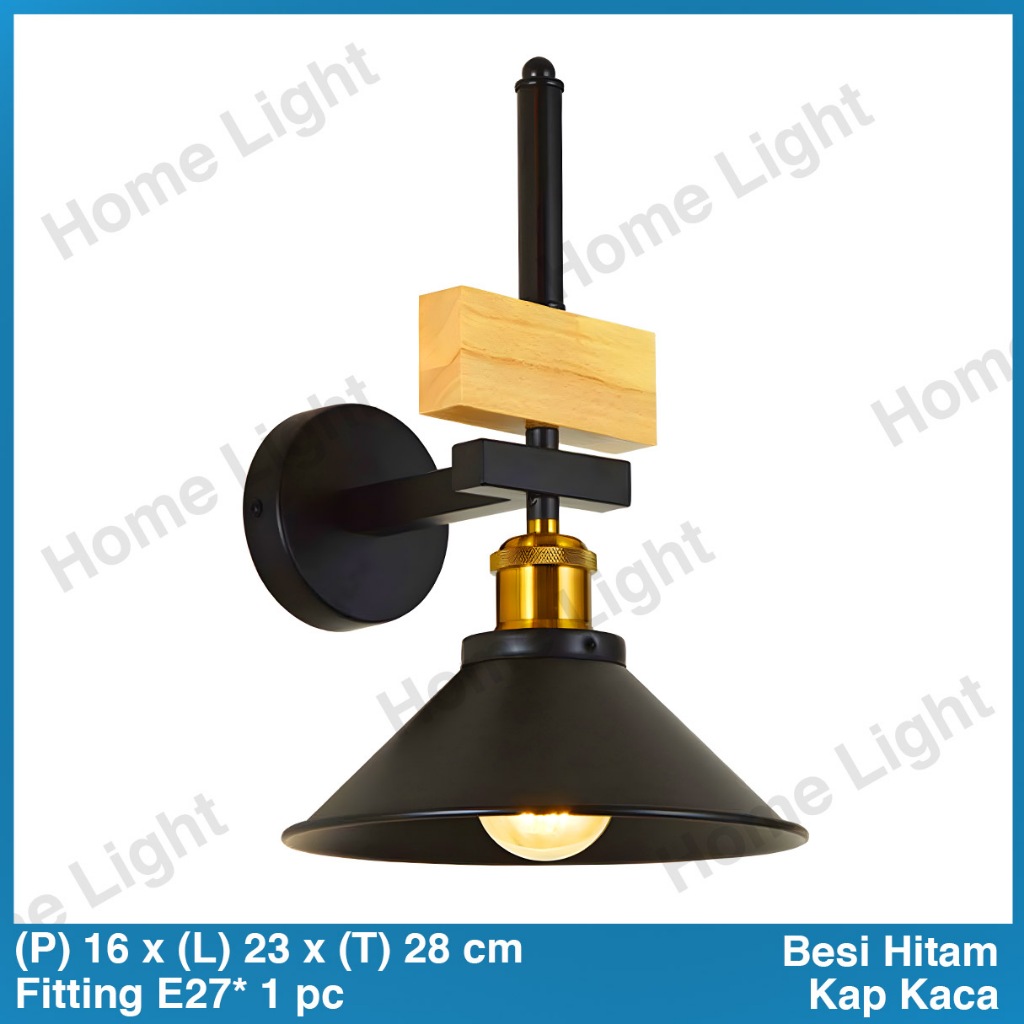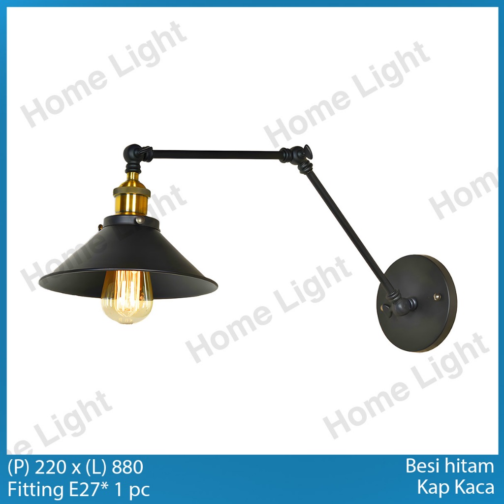 Lampu Dinding Minimalis Industrial Vintage Kamar Tidur Indoor Aesthetic Estetik Cafe Full Black Hitam 37
