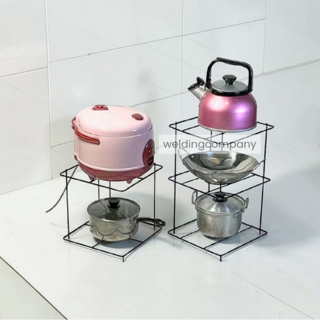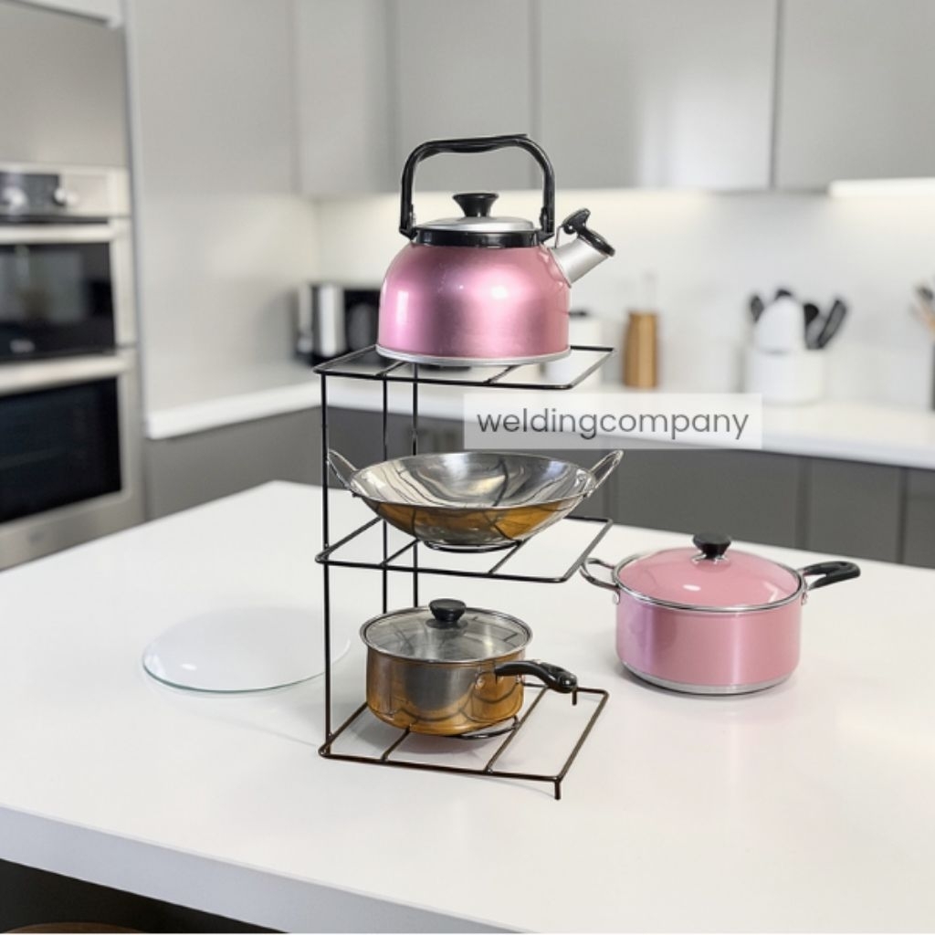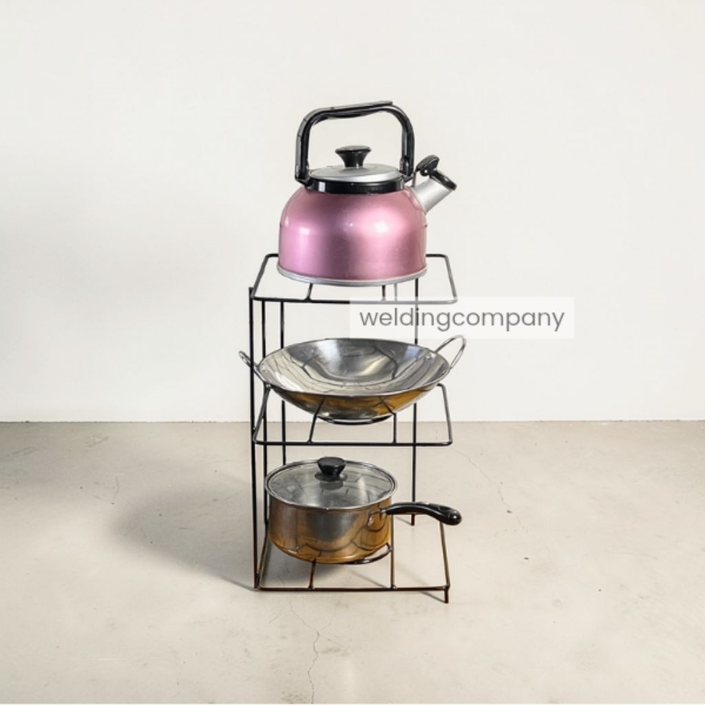 Rak Panci Susun 3 Tingkat Serbaguna Rak Dapur Penyimpanan Wajan dan Panci Besi Hitam Modern & Elegan Cocok untuk Dapur Anda