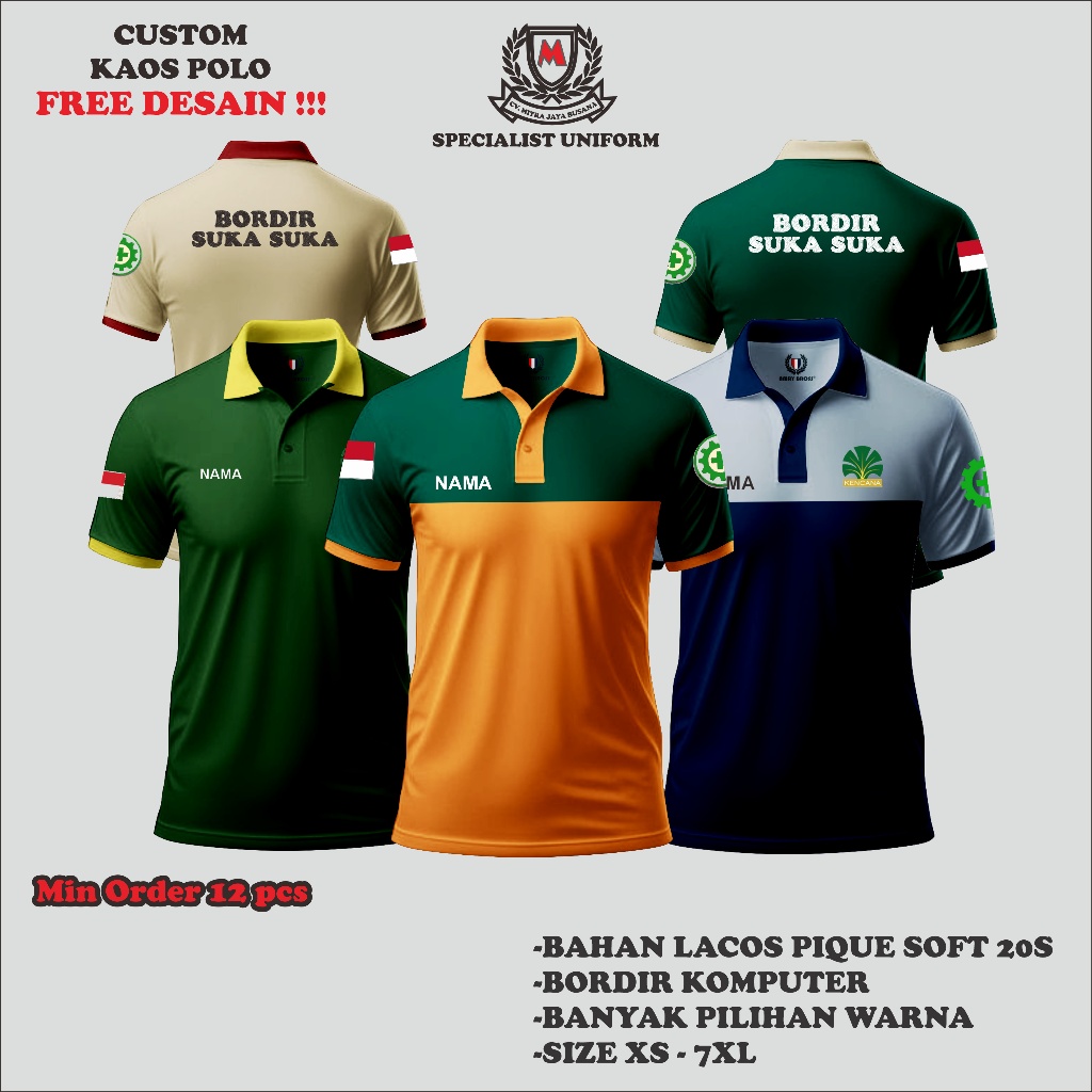 KAOS POLO CUSTOM BORDIR, KAOS KERAH WANGKI, LENGAN PENDEK