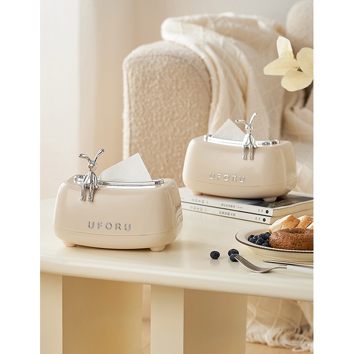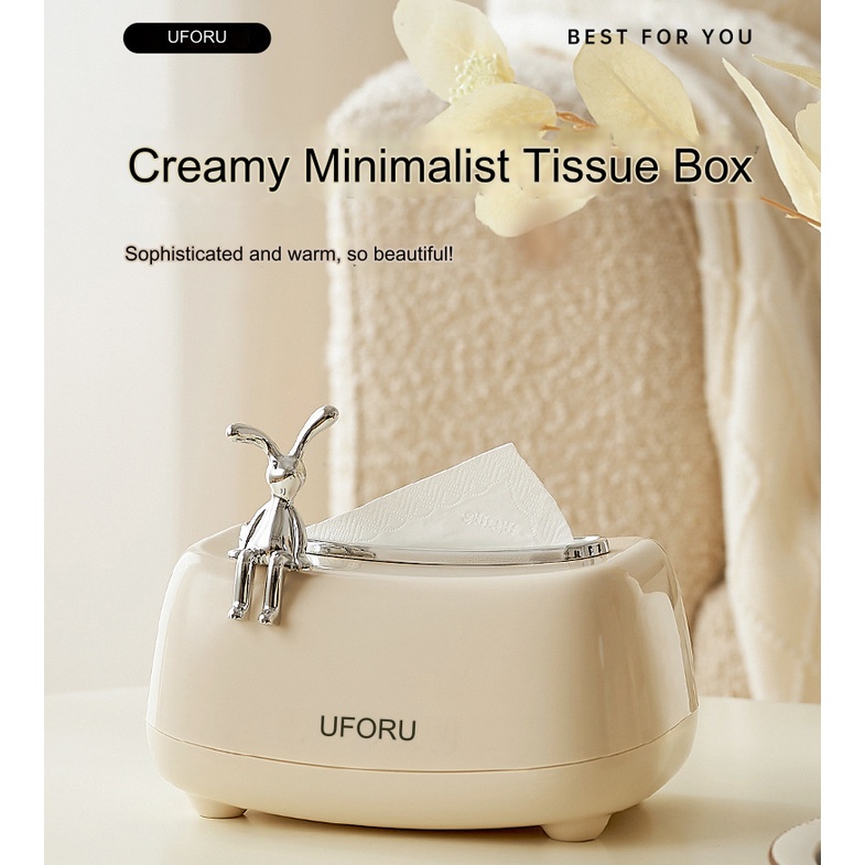KITAKATA USAGI UFORU Kotak Tissue Cream White Vintage Classic Estetik Kotak Penyimpanan Warna Krem Elegan Tissue Box Kotak Tisu Organiser Box Tissue Box Refill Box Serbaguna Kotak