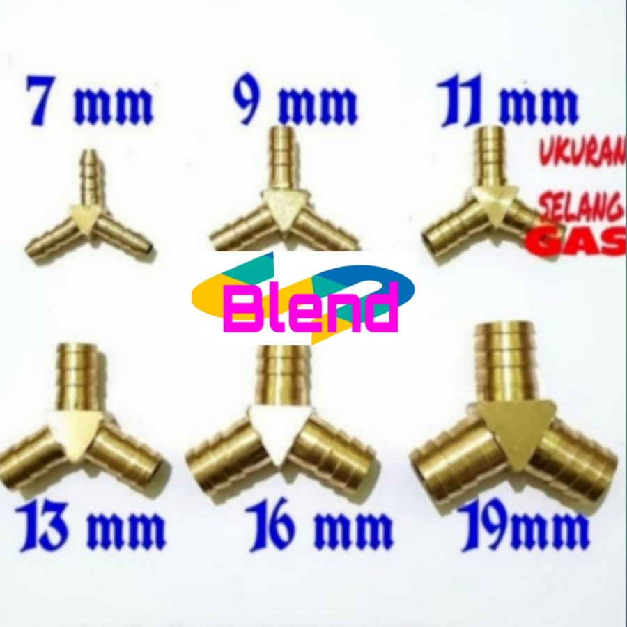 11 mm Nepel Cabang 3-Y 3/8 inch KUNINGAN Sambungan Selang Gas/Air