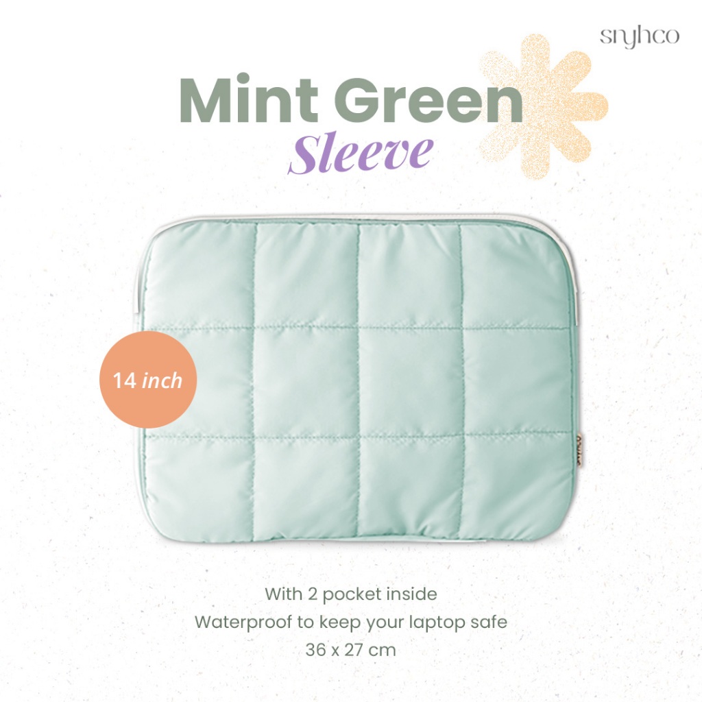Tas Laptop Sleeve Puffy Zipper Pastel Waterproof 14 - 15 inch