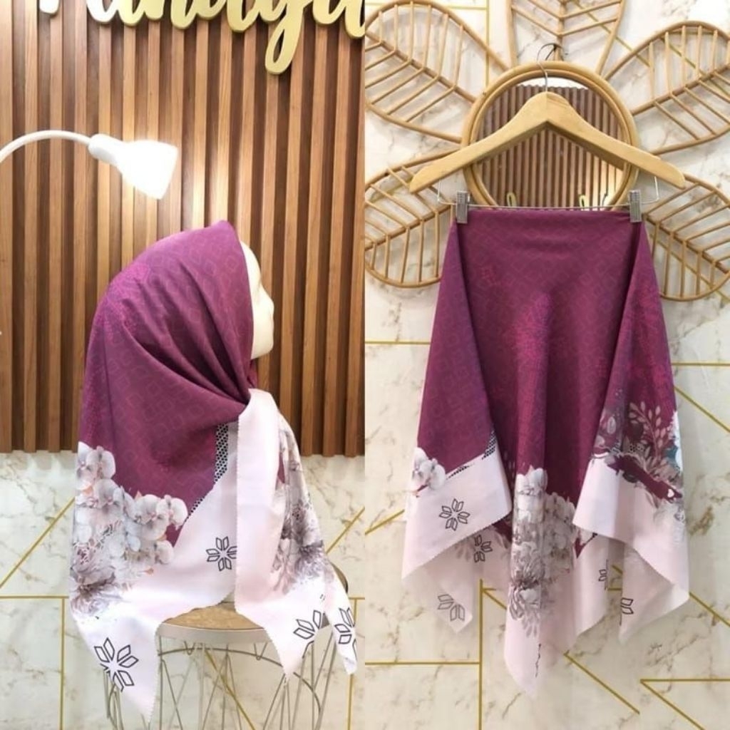HIJAB SEGI EMPAT MOTIF WARNA MAGENTA