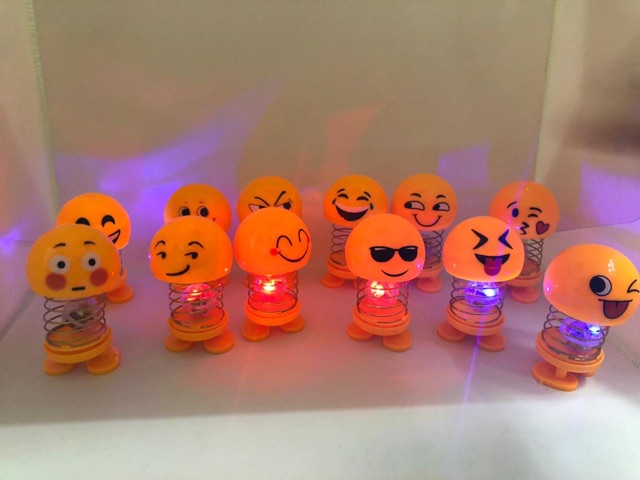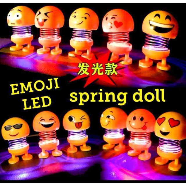 Boneka Goyang Spring Doll Emoji LED Lampu Pajangan Mobil