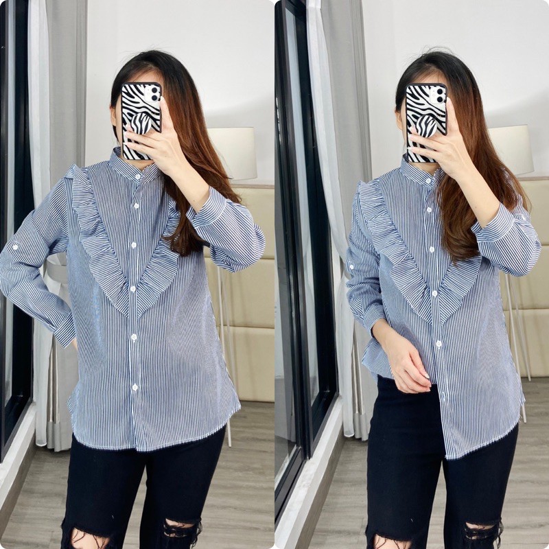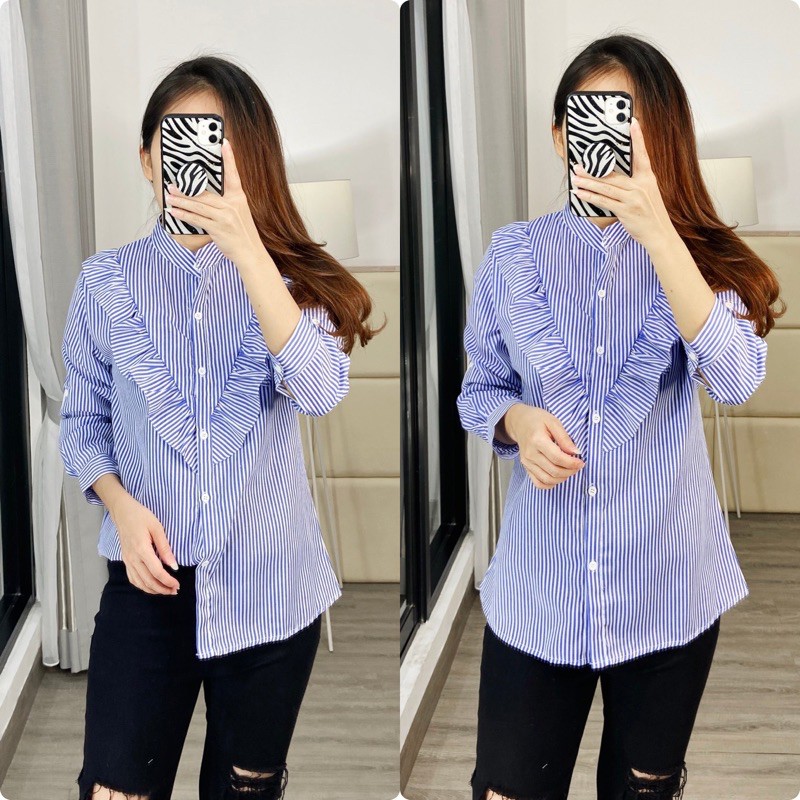 real pic kemeja rempel salur / kemeja kerja wanita / kemeja salur / kemeja lengan panjang / KSRU