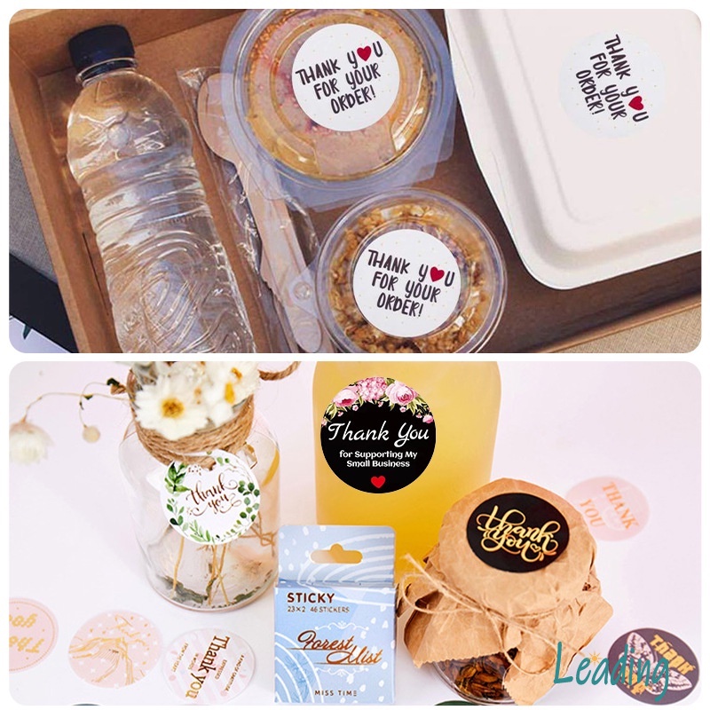 COD 500 PCS/ 1Roll 2.5cm thank you label penyegelan makanan penutup bundar pola kartun kucing lucu-Le
