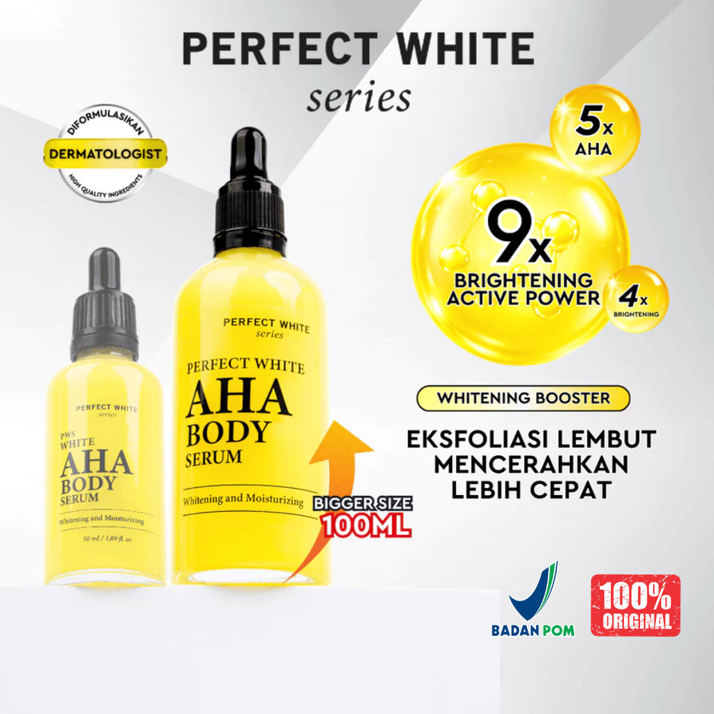 [50ml] Perfect White AHA Body Serum 50ml – 5 AHA + Alpha Arbutin, Vitamin C (3-O-Ethyl Ascorbic Acid) & Niacinamide | Body Serum Hydrating Brightening untuk Area Kulit Kusam, BPOM hsa