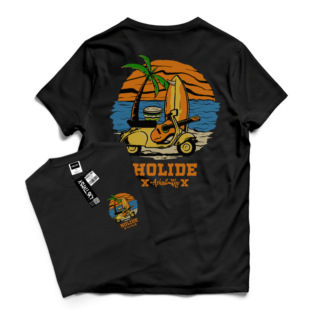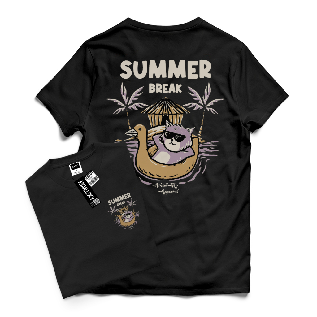 Ashall.sky Kaos Distro Pria Wanita Motif Summer Break Warna Hitam Bahan Katun Combed 30s