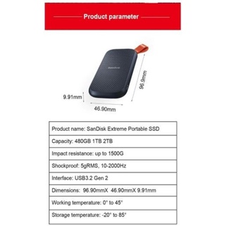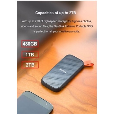 SSD Eksternal 1TB/2TB SanDisk Extreme up to 520Mbps USB 3.2 (E30) - Original Garansi Resmi
