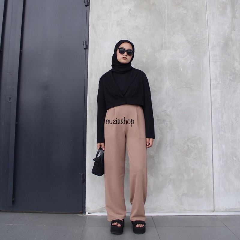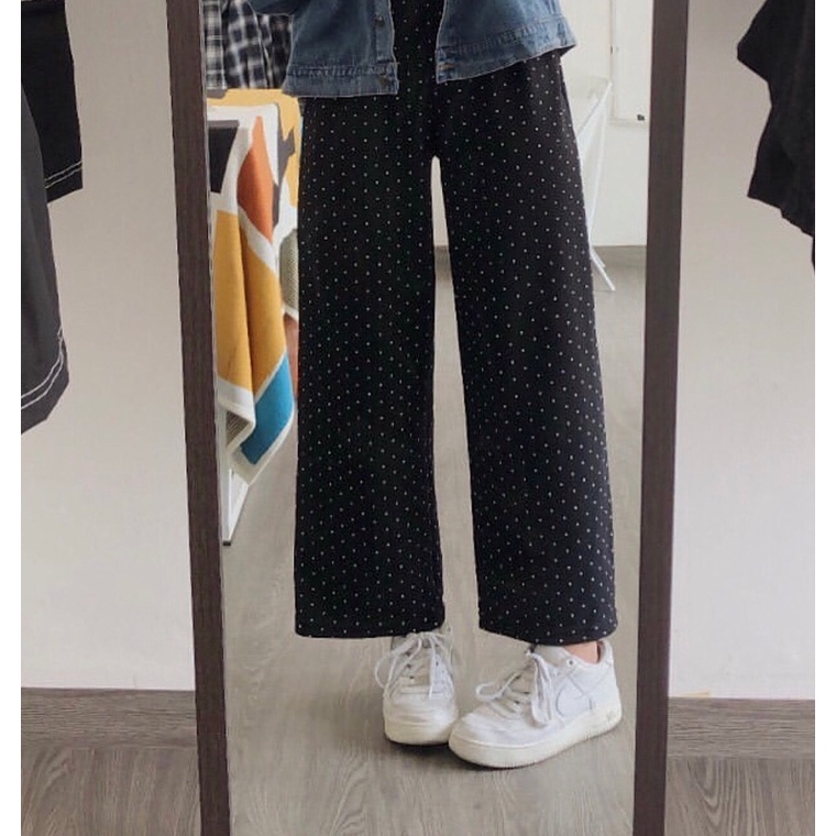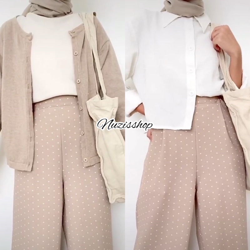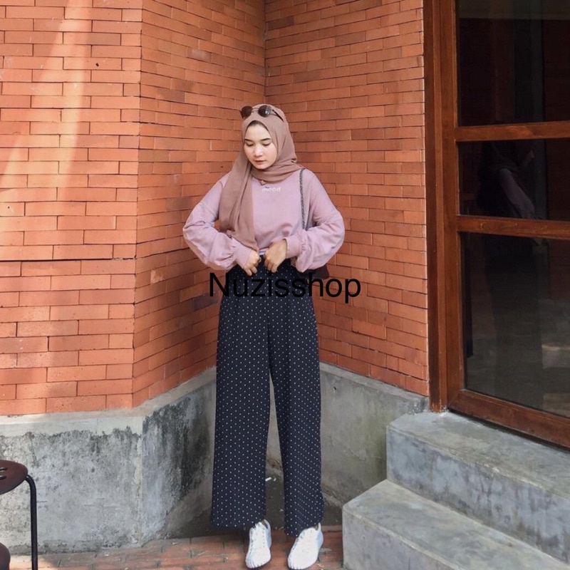 Hana Celana Kulot Polka Polkadot Polos Hitam Pants | Nuzisshop