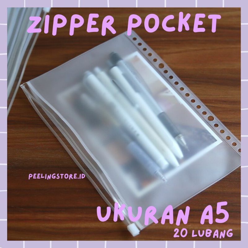 A5 PREMIUM ZIPPER ZIPLOCK KANTONG SERBAGUNA BINDER A5 20 RING ZIPPER POCKET A5 6 RING